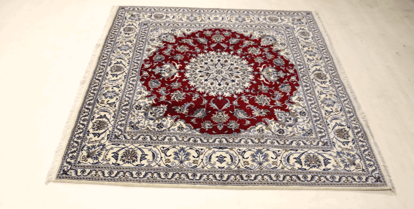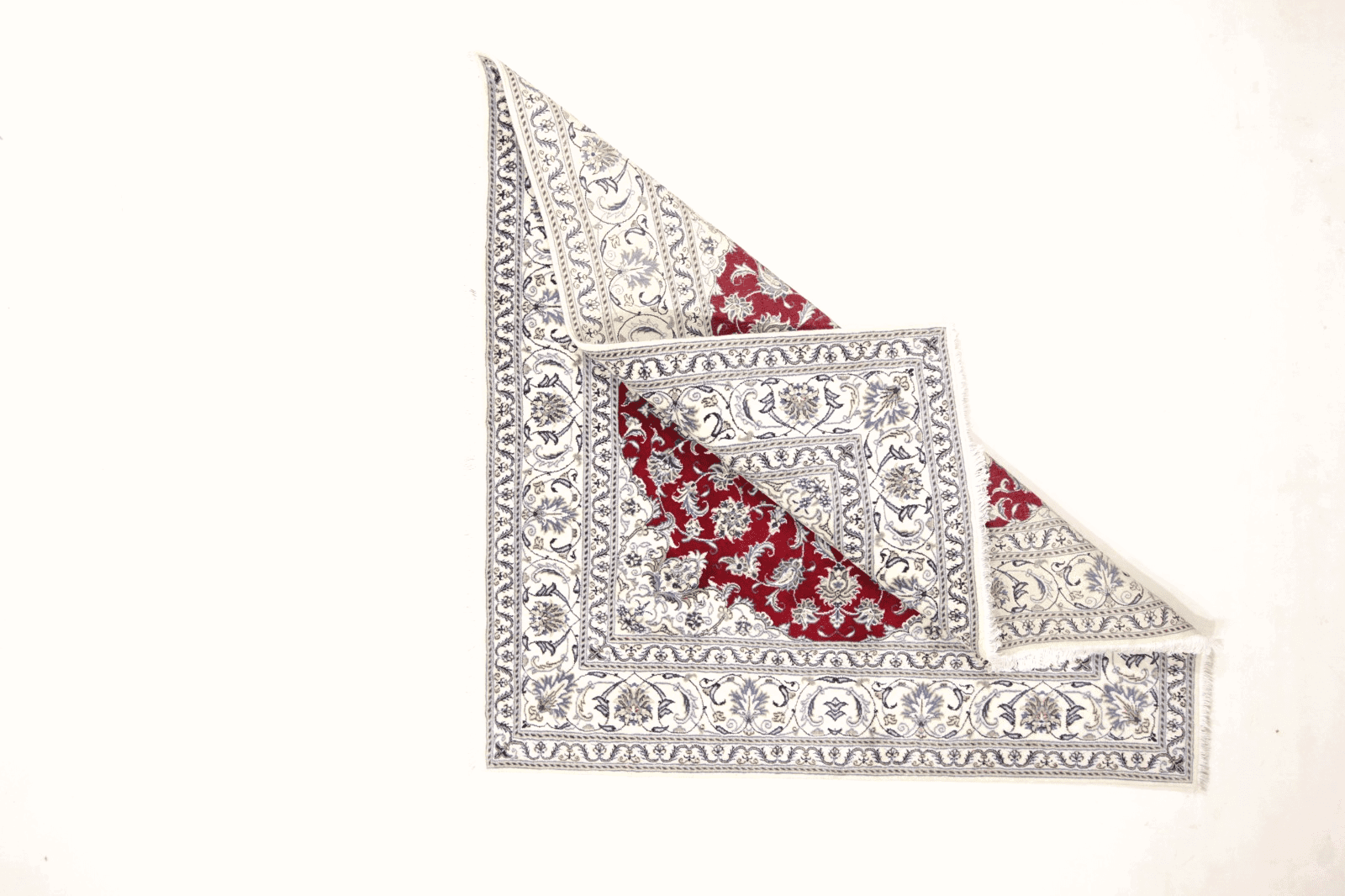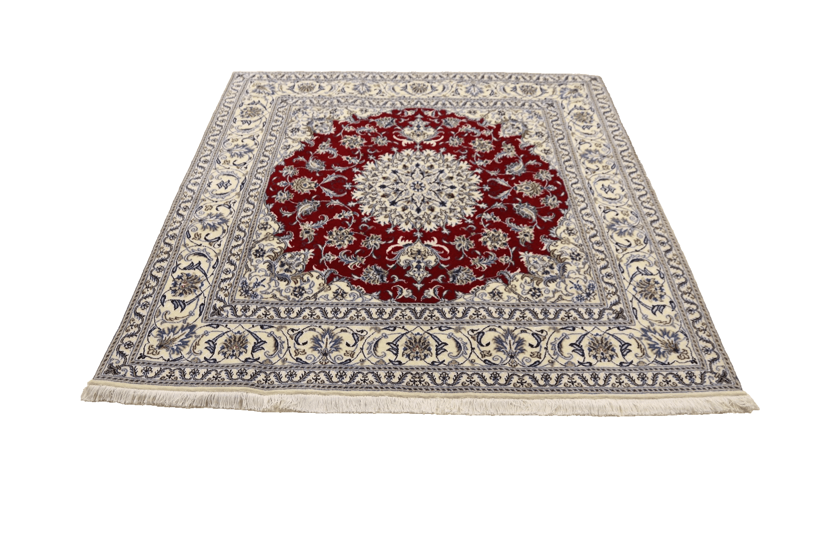 Wunderschöner Orientteppich Super Nain | Knotendichte: 300.000 Knoten/m² | Material: 90 % Schurwolle, 10 % Seide | Größe: 195 x 198 cm | Zustand: Neu, perfekt | Herkunft: Persien | Handgeknüpft | Geeignet für Fußbodenheizung | Traditionelles, orientalisches Muster | Farbe: Rot | Florhöhe: 8 mm