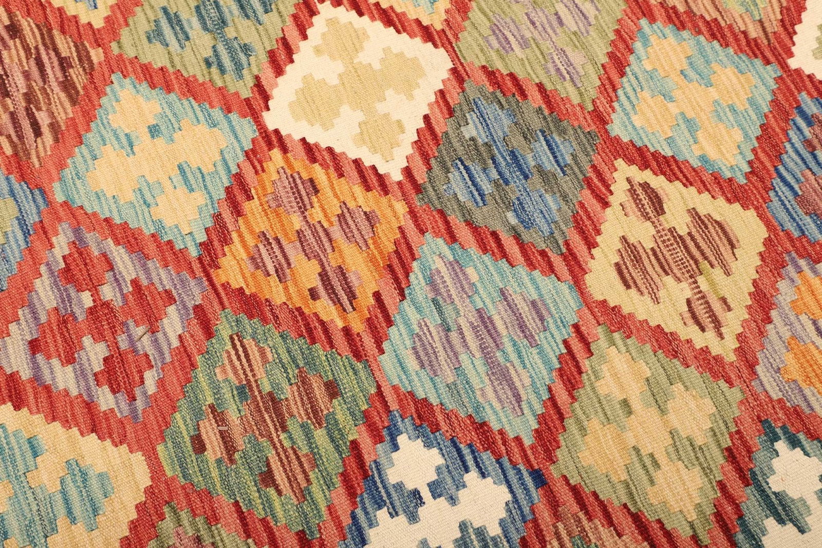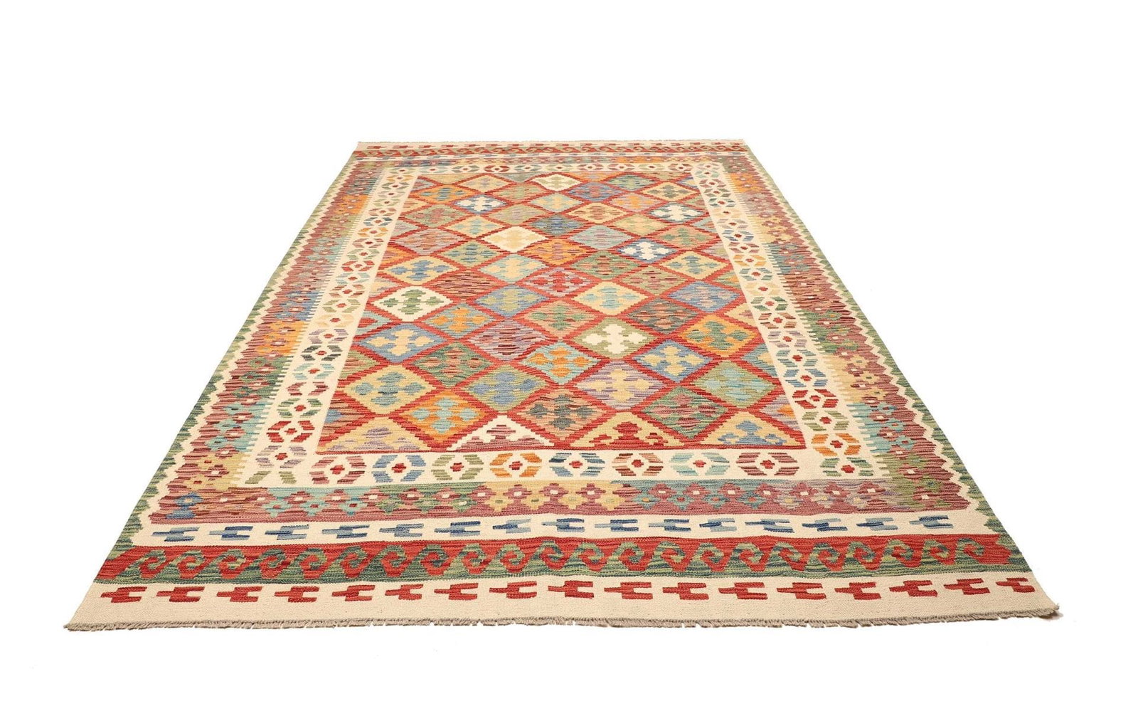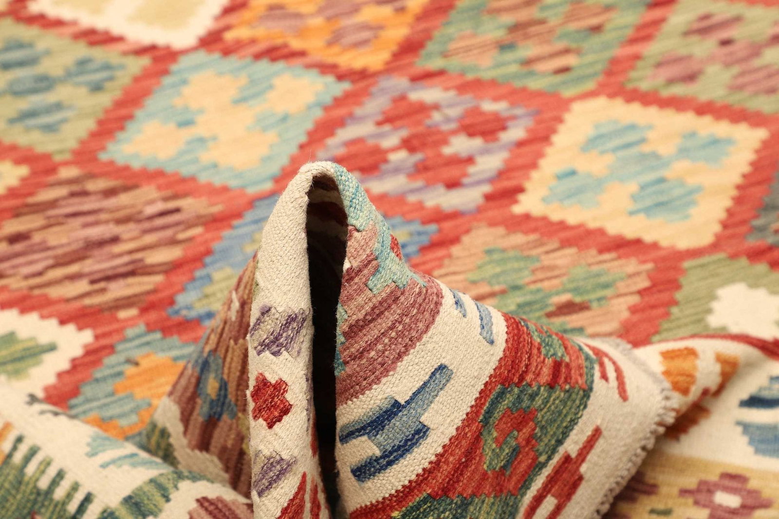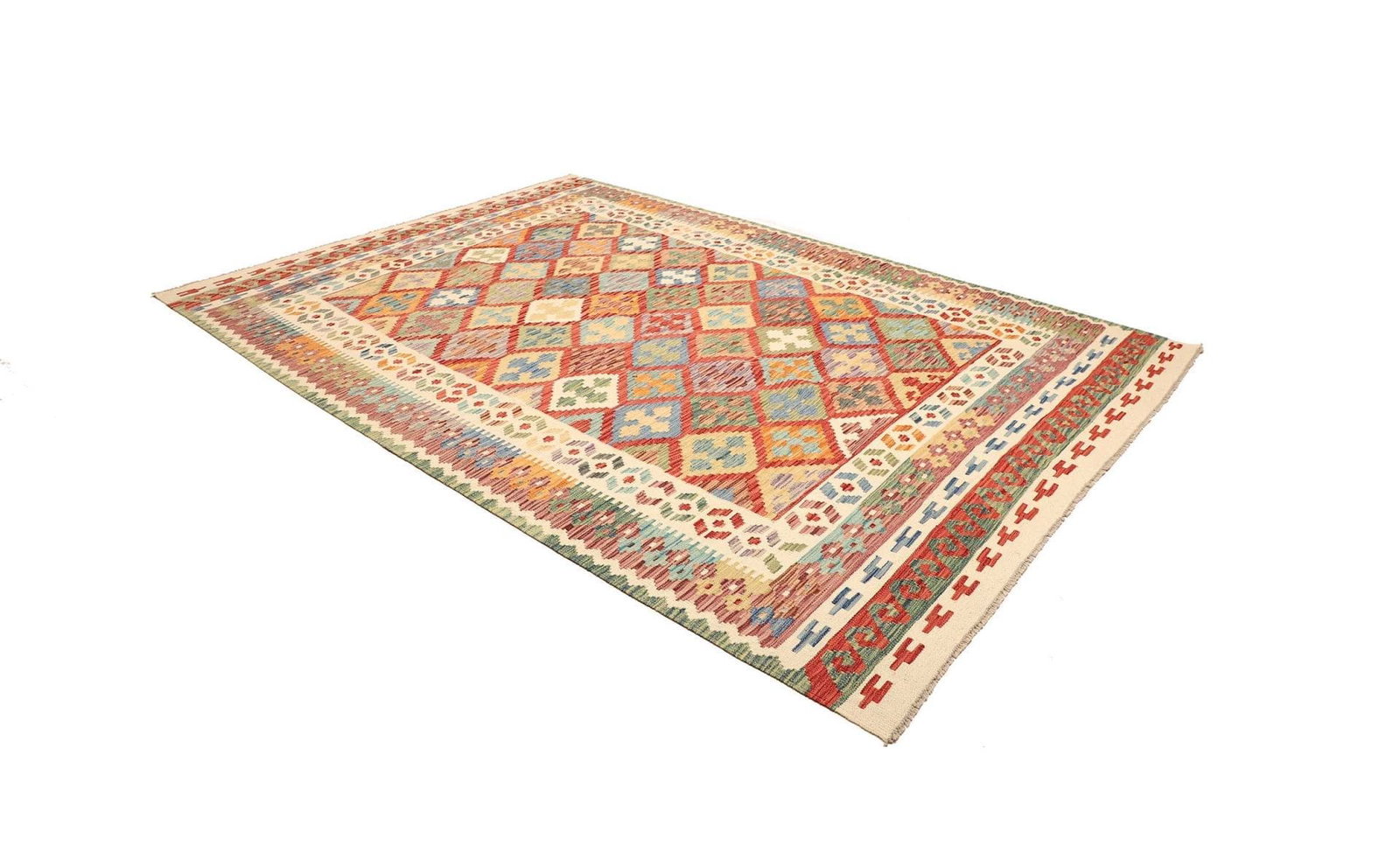 Kelim Teppich | Knotendichte: ca. 200.000 Knoten/m² | Material: 100% Schurwolle | Größe: 203 x 291 cm | Verarbeitung: Handgewebt | Herkunft: Pakistan | Florhöhe: ca. 5 mm | Vielseitig einsetzbar: Ideal als Teppich, Vorhang oder Wandschmuck