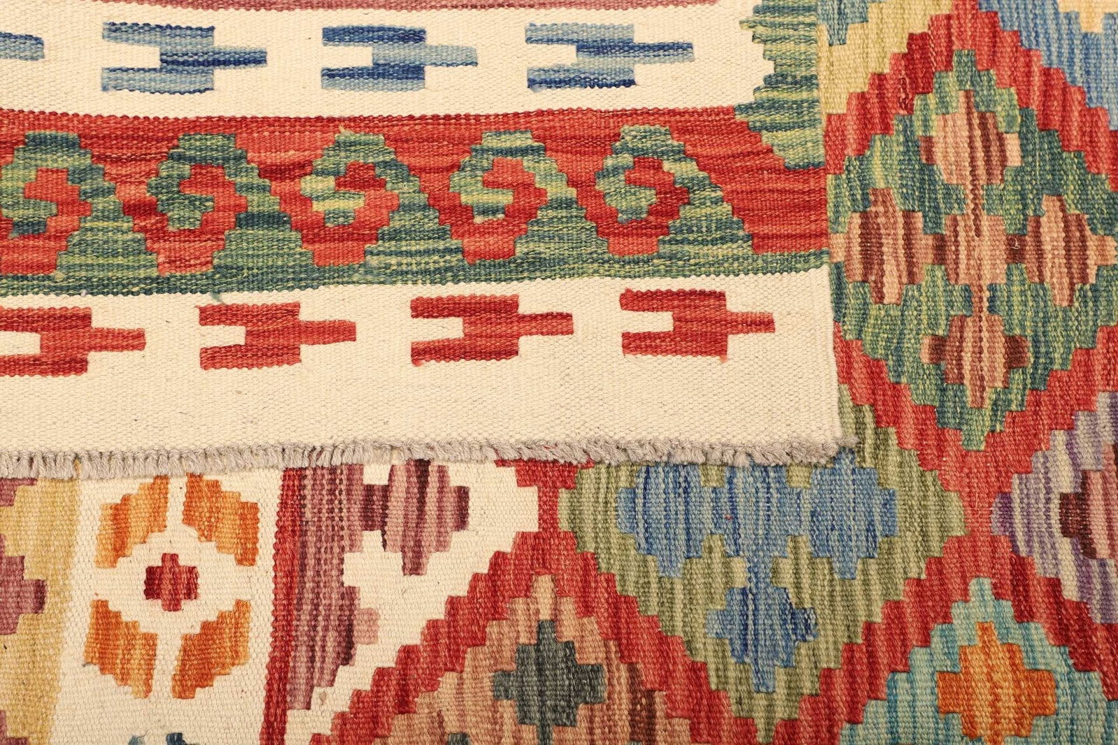 971$ In den WarenkorbKelim 216 x 128 cm – Handgewebt mit doppeltem Muster auf Vorder- und Rückseite – Traditioneller Wandschmuck – Handgeknüpft – Orientteppich