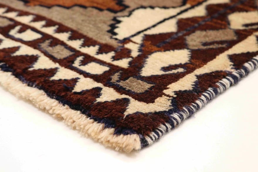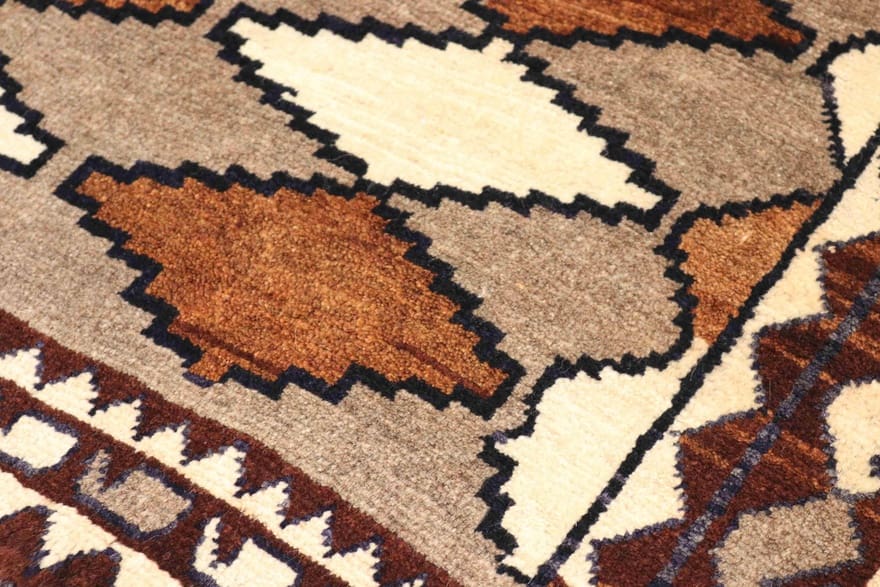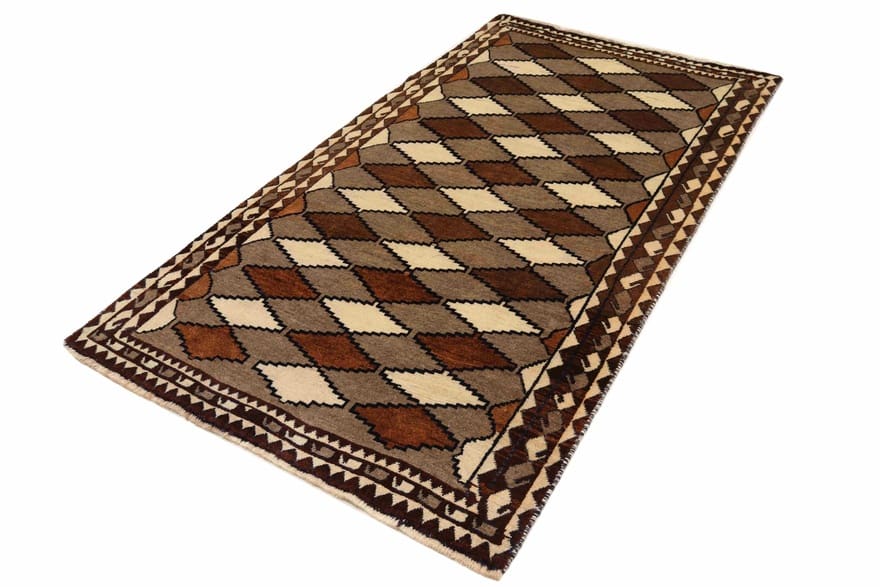 Handgeknüpfter GHashghai Teppich | Knotendichte: 160.000 – 200.000 Knoten/m² | Material: Hochwertige Wolle | Größe: 205×115 cm | Farben: Harmonische Braun- und Gelbtöne | Zustand: Neu | Ursprung: Iran / Persien