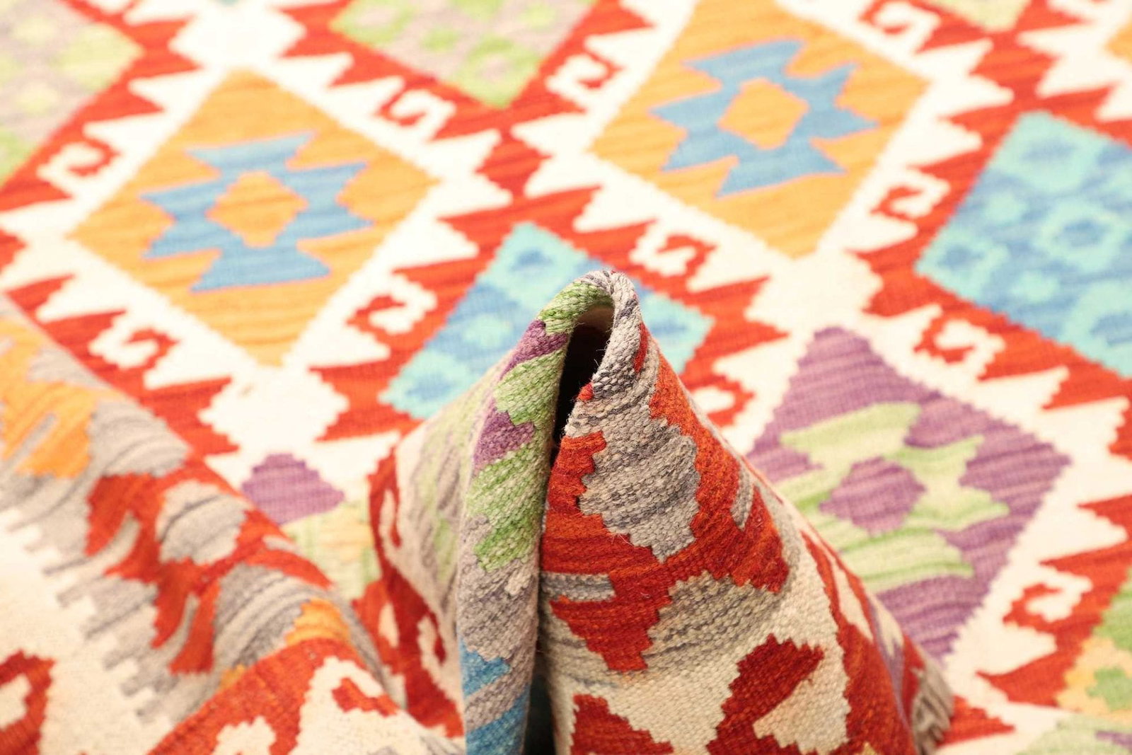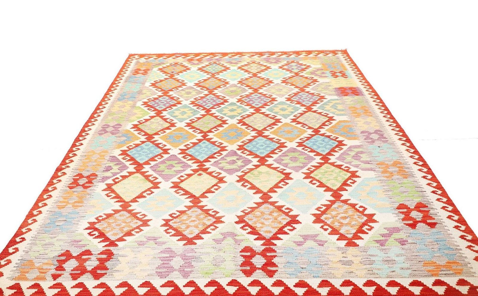 Orientteppich 206 x 298cm, Afghan Kelim, Schurwolle, handgewebt