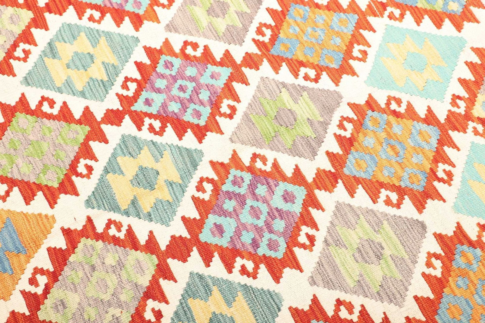 Der Orientteppich ist ein faszinierendes Kunstwerk, das nicht nur als Bodenbelag, sondern auch als Ausdruck von Kultur und Handwerkskunst dient. Der hier präsentierte Afghan Kelim zeichnet sich durch seine bemerkenswerte Herstellung und seine zeitlose Schönheit aus. Hergestellt aus reiner Schurwolle, die für ihre Weichheit und Langlebigkeit bekannt ist, bietet dieser handgewebte Teppich nicht nur ästhetische Vorteile, sondern auch eine hohe Strapazierfähigkeit.