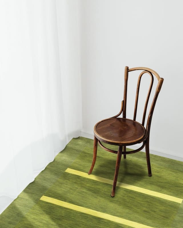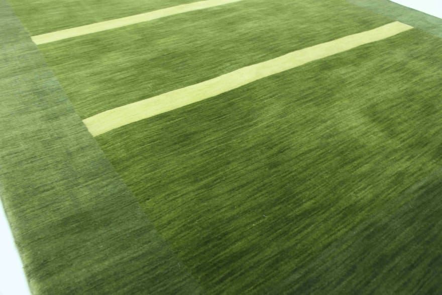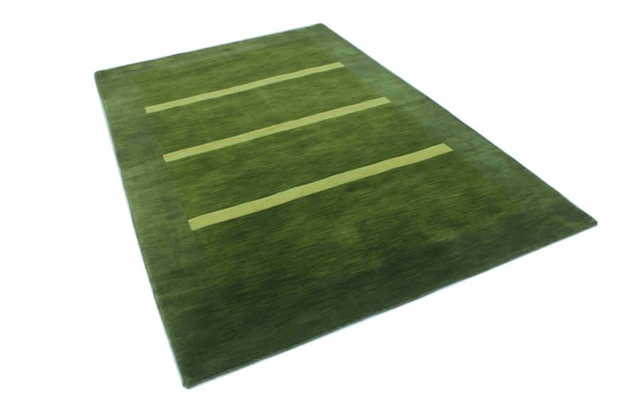 Hochwertiger Loribaf-Teppich | Knotendichte: 90.000 Knoten/m² | Material: Handgesponnene Wolle | Größe: 248×163 cm | Zustand: Neuzeitlich (0-20 Jahre) | Verarbeitung: Handgeknüpft | Farbe: Grün/Oliv | Herkunft: Indien | Dicke: ca. 10 mm | Gewicht: ca. 12 kg