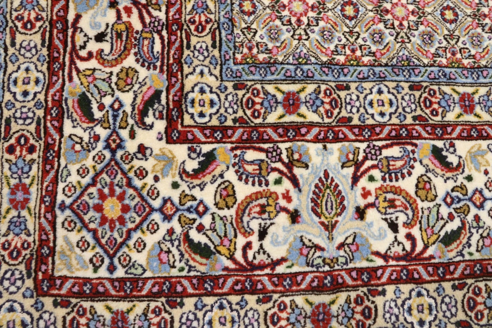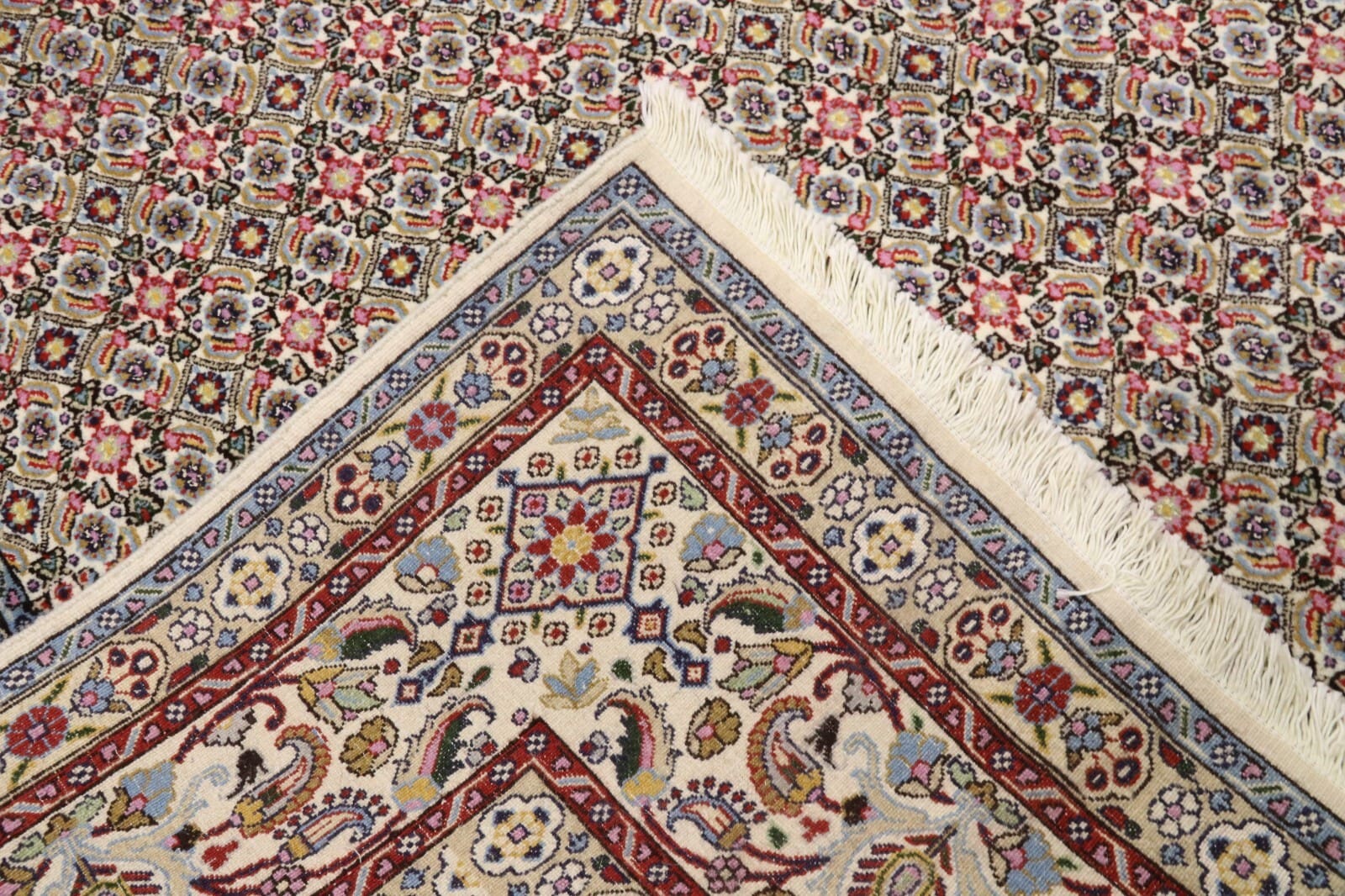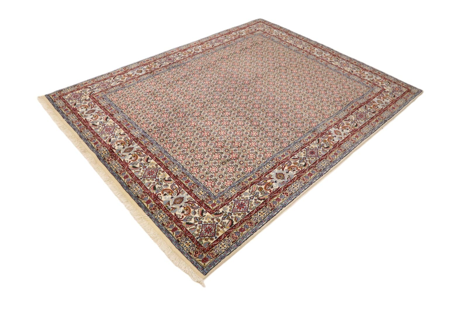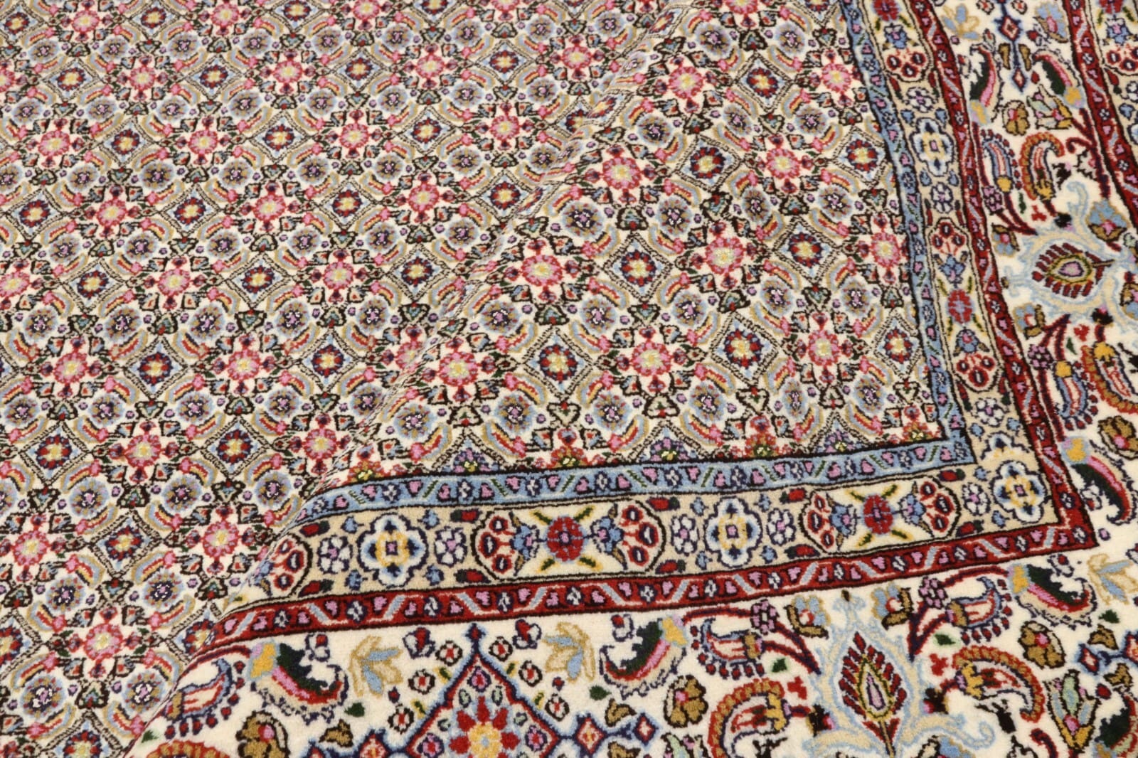 Wunderschöner Orientteppich Moud | Knotendichte: ca. 400.000 Knoten/m² | Material: 90% Schurwolle, 10% Seide | Größe: 249×197 cm | Zustand: Neu, sehr gut | Herkunft: Persien | Herstellungsart: Handgeknüpft | Stil: Traditionell Orientalisch/Persisch | Besonderheiten: Für Fußbodenheizung geeignet, haustierfreundlich
