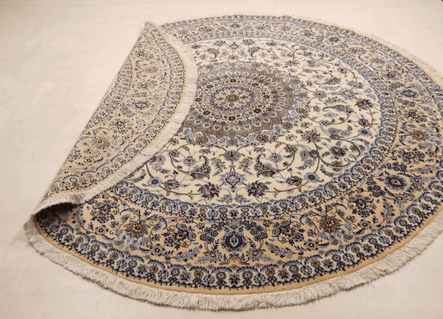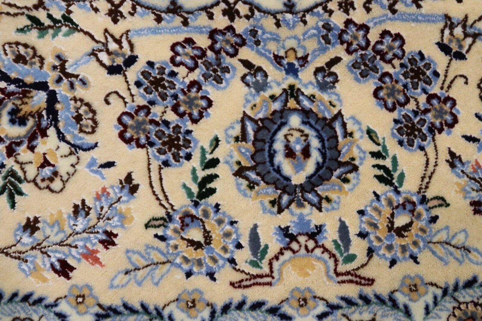 Der Teppich stammt aus der berühmten Stadt Nain im Iran, einem Zentrum der Teppichproduktion. Nain ist bekannt für seine hochwertigen Perserteppiche, die sich durch ihre feinen Materialien und die exquisite Verarbeitung auszeichnen. In dieser Region wird die Kunst des Teppichknüpfens seit Jahrhunderten gepflegt, wobei traditionelle Muster und Techniken von Generation zu Generation weitergegeben werden.