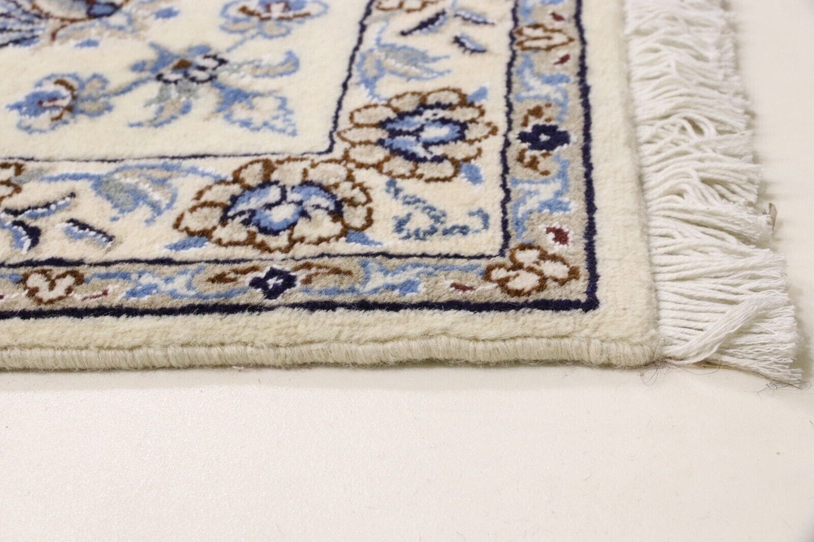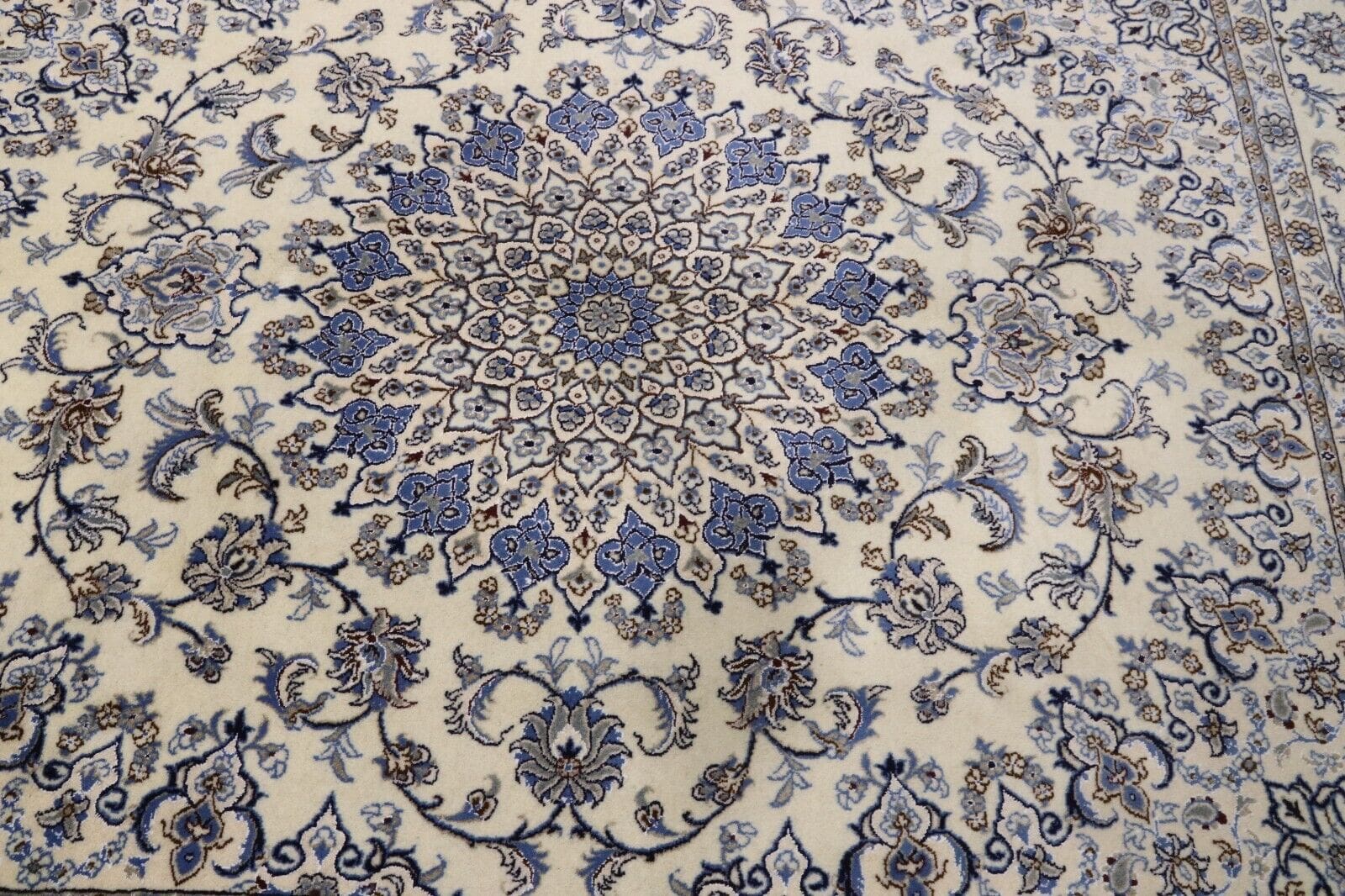 Handgeknüpfter Orientteppich Super Nain | Knotendichte: ca. 300.000 Knoten/m² | Material: 90% Schurwolle, 10% Seide | Größe: 294 x 243 cm | Zustand: Neu, unbenutzt | Herkunft: Persien | Florhöhe: 8 mm | Geeignet für Fußbodenheizung | Haustierfreundlich | Stil: Traditionell Orientalisch/Persisch | Farbe: Dunkelblau | Herstellungsart: Handgeknüpft