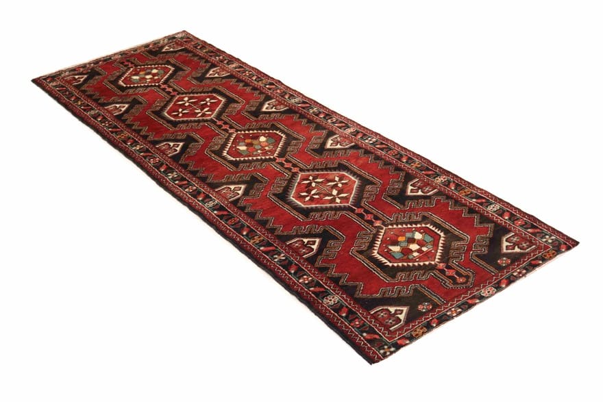 Handgeknüpfter Teppich | Knotendichte: 160.000 – 200.000 Knoten/m² | Material: Wolle und Baumwolle | Größe: 316×107 cm | Farbe: Rot/Orange | Zustand: Neuzeitlich (0-20 Jahre) | Herkunft: Iran / Persien | Gewicht: ca. 12 kg | Dicke: ca. 10 mm | Form: Läufer