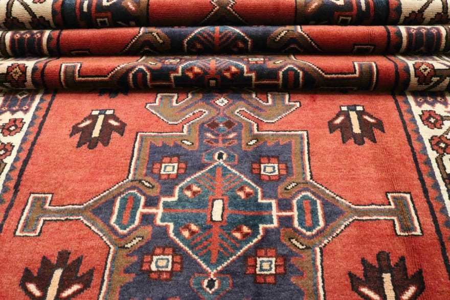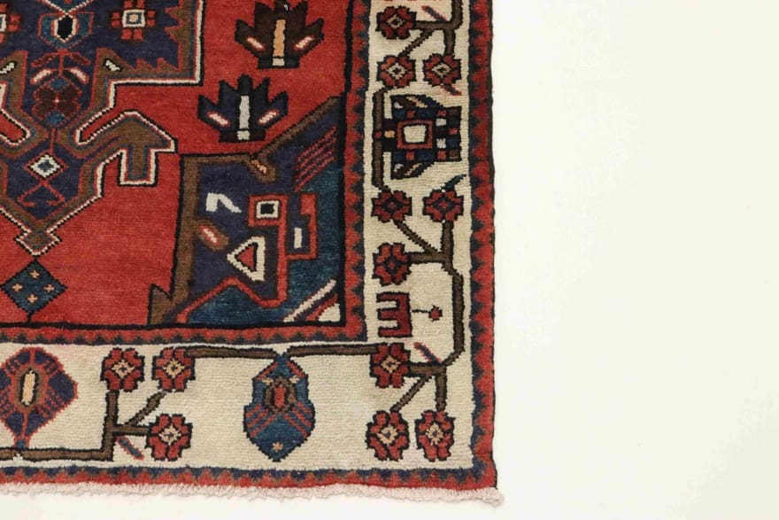 Die Muster auf diesem Teppich sind charakteristisch für die Hamedan Teppiche und zeichnen sich durch eine harmonische Kombination aus traditioneller und zeitgenössischer Gestaltung aus. Die Farben sind warm und einladend, was dem Teppich eine gewisse Tiefe und Lebendigkeit verleiht. Mit seiner auffälligen Farbpalette aus Rot-, Blau- und Beigetönen fügt er sich nahtlos in verschiedene Einrichtungsstile ein, sei es klassisch, modern oder im Boho-Look.