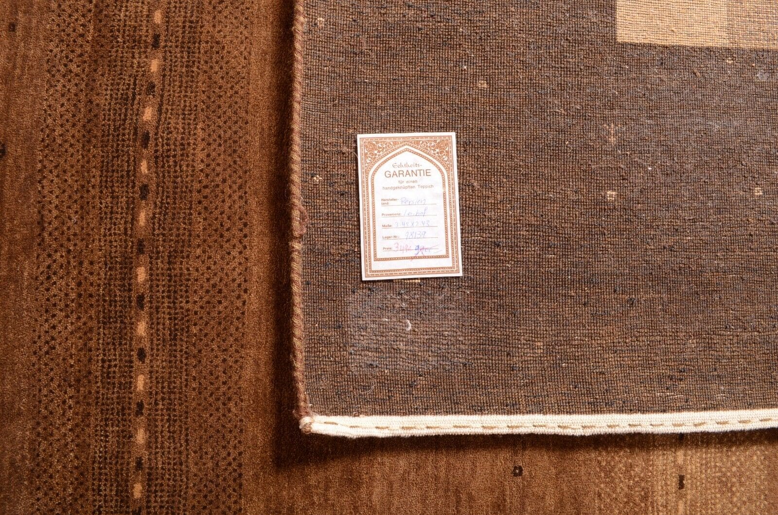 Handgeknüpfter Orientteppich Loribaft | Knotendichte: 400.000 Knoten/m² | Material: 100% handgesponnene und handgefärbte Schurwolle | Größe: 347 x 244 cm | Zustand: Neu, perfekt | Herkunft: Indien | Dicke: ca. 10 mm | Für Fußbodenheizung geeignet | Stil: Modern | Muster: Umrandung