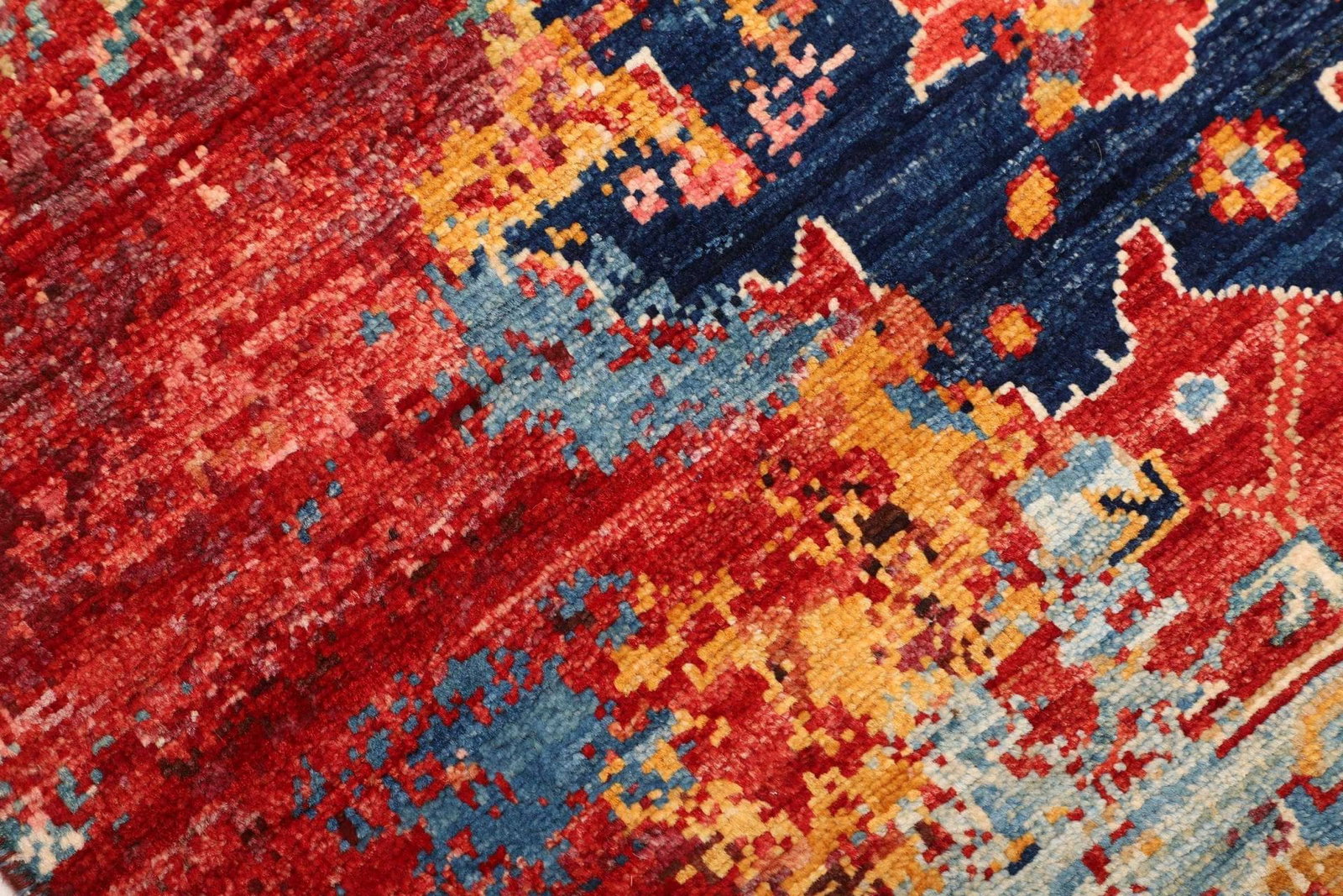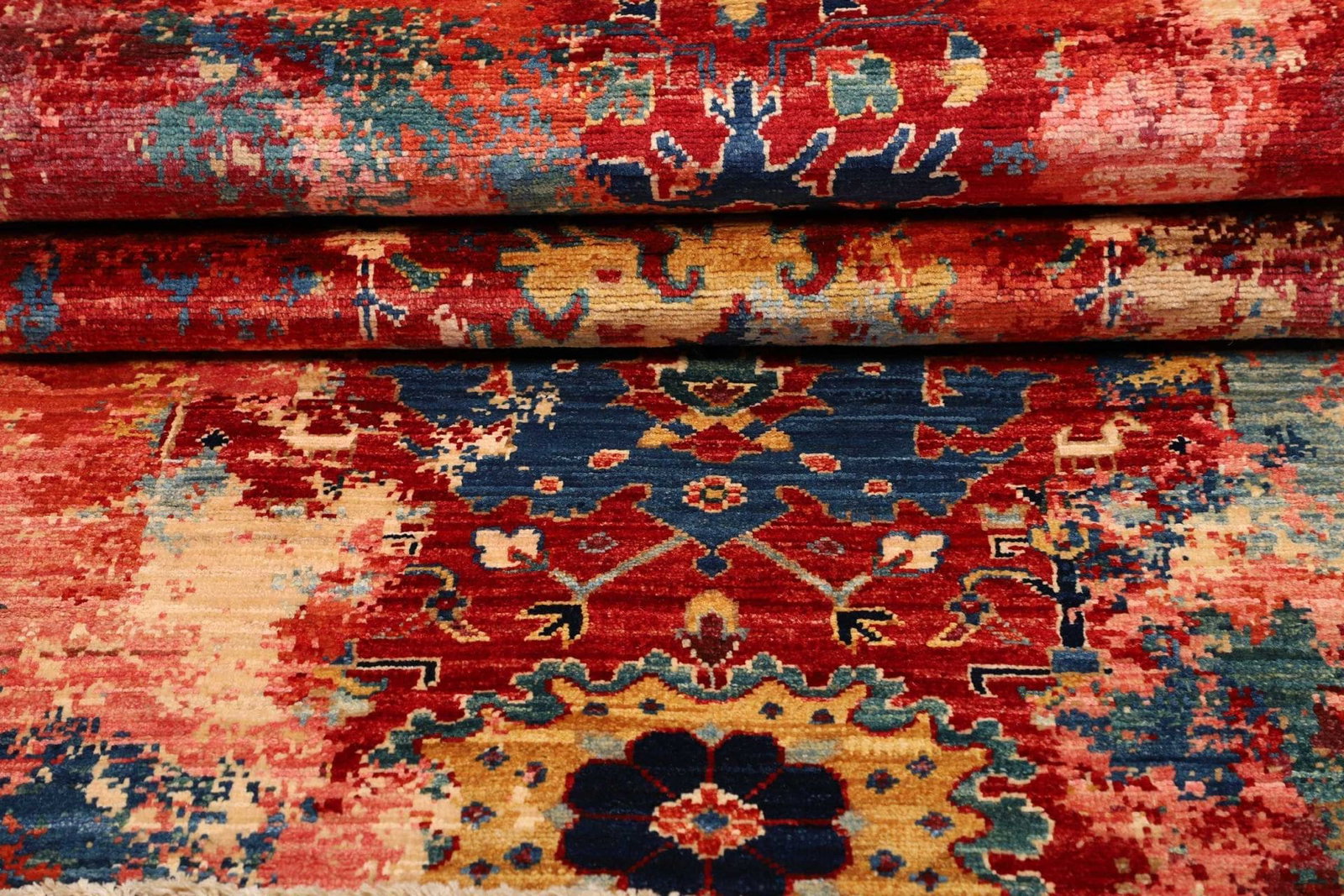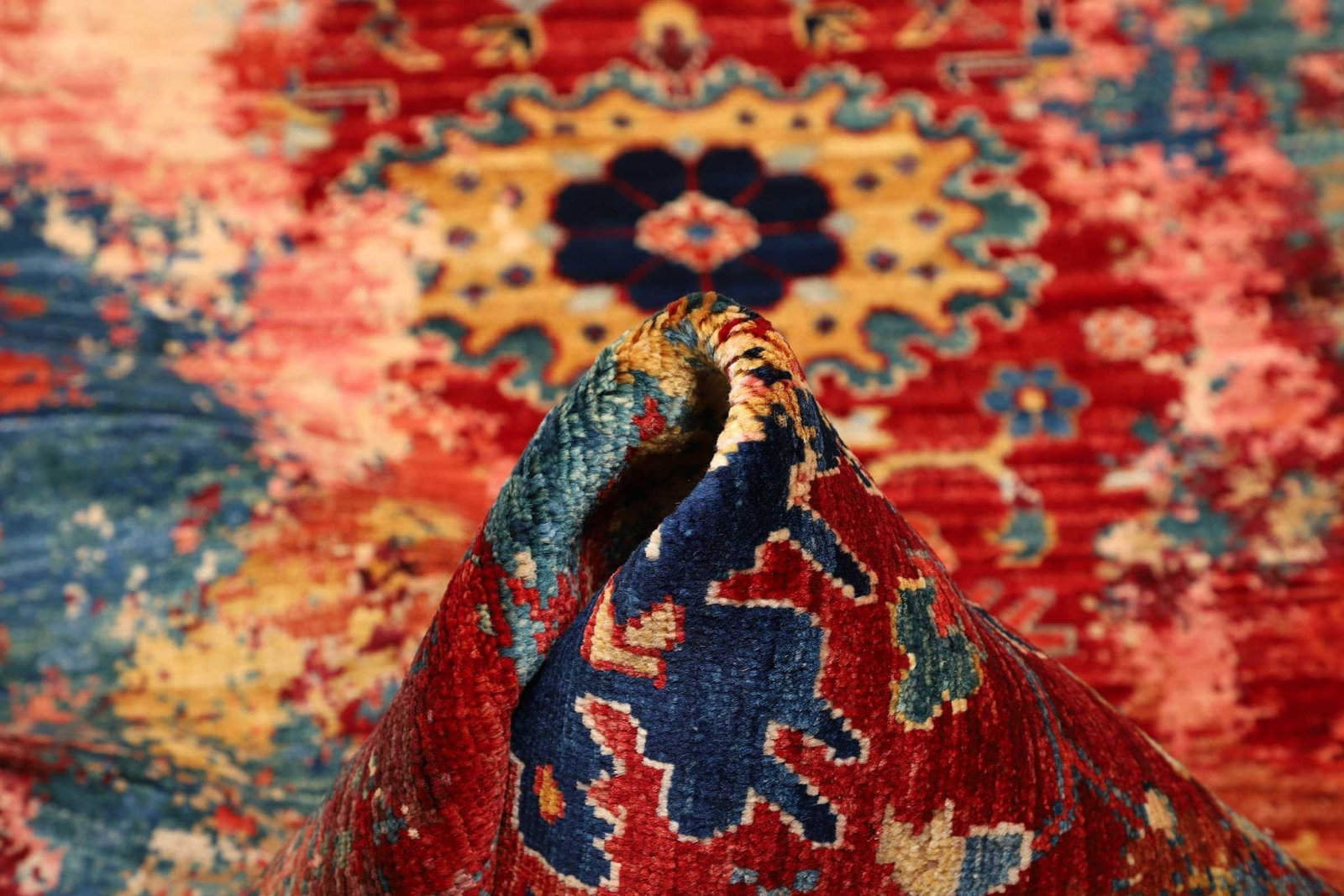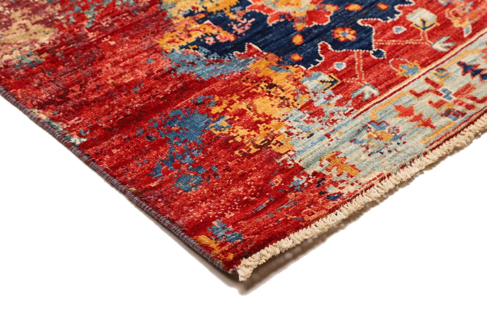 Die handgeknüpfte Verarbeitung ist ein Zeichen für höchste Qualität. Dabei wird jeder Knoten einzeln von Hand gesetzt, was nicht nur für die Robustheit des Teppichs sorgt, sondern auch die Detailtreue in der Verarbeitung unterstreicht. Durch die Knotentechnik entstehen tiefgründige Farbschichten und eine einzigartige Struktur, die jedem Teppich eine individuelle Note verleiht.