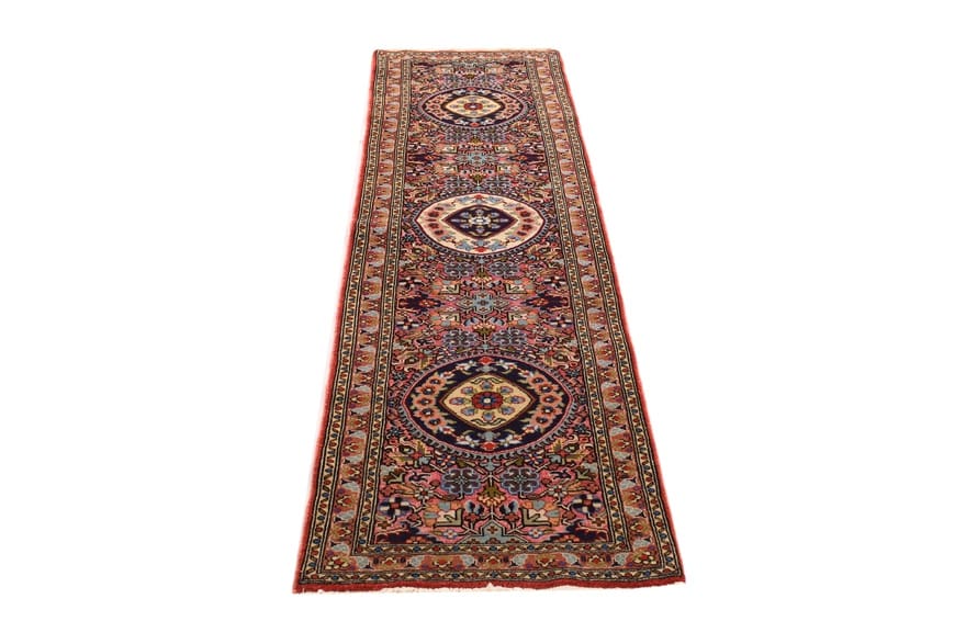 Handgeknüpfter Ardebil-Läufer | Knotendichte: 200.000 – 250.000 Knoten/m² | Material: Handgesponnene Wolle und Baumwolle | Größe: 284×68 cm | Farbe: Rot/Orange | Zustand: Neuzeitlich (0-20 Jahre) | Ursprung: Iran/Persien | Dicke: ca. 10 mm | Gewicht: ca. 5 kg