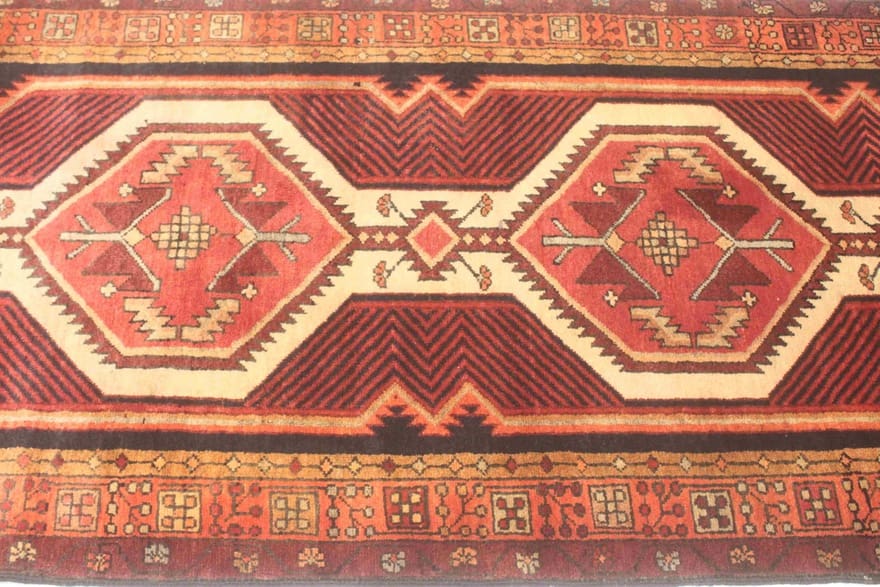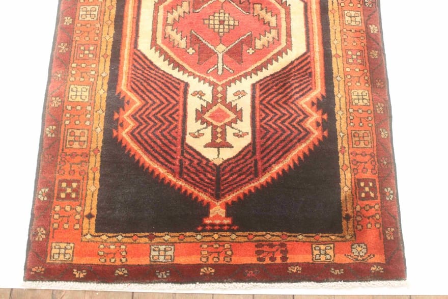 Handgeknüpfter Azarbaeijan Teppich | Knotendichte: 160.000 – 200.000 Knoten/m² | Material: Wolle (Flor) und Baumwolle (Kette) | Größe: 404×106 cm | Zustand: Neuzeitlich (0-20 Jahre) | Farbe: Rot/Orange | Form: Läufer | Herkunft: Iran / Persien