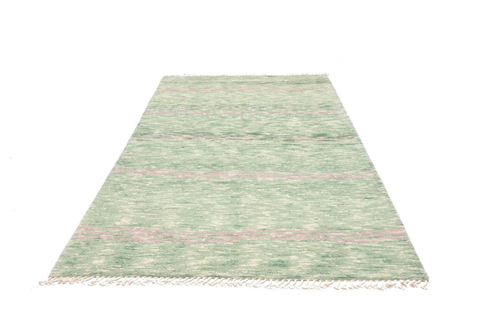 Die Provenienz dieses Teppichs ist Berber, wobei die Tradition der Berber Teppichknüpfung hauptsächlich in Marokko und bestimmten Regionen Pakistans verankert ist. Die Berber Teppiche zeichnen sich durch ihre einfarbigen, meist hellen Wolltöne aus, die durch die Verwendung von natürlicher Schafwolle entstehen. Diese Teppiche haben oft eine lange Geschichte und sind tief in der Kultur der Berber verwurzelt, die für ihre handwerklichen Fähigkeiten und ihre Verbindung zur Natur bekannt sind. Die Teppichknüpfkunst hat sich in diesen Regionen über Jahrhunderte entwickelt und wird von Generation zu Generation weitergegeben.