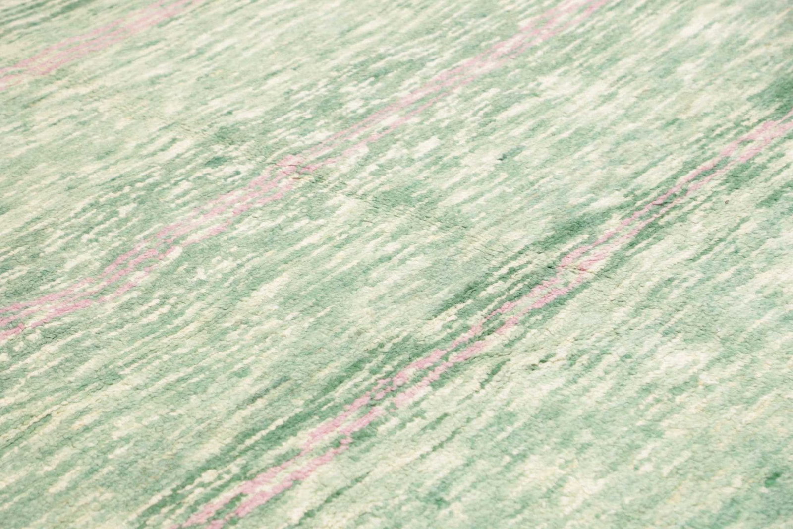 Ein herausragendes Merkmal dieses Teppichs ist die handgeknüpfte Qualität, die eine hohe Kunstfertigkeit erfordert. Handgeknüpfte Teppiche sind in der Regel langlebiger und bieten eine bessere Haltbarkeit als maschinell hergestellte Teppiche. Der hohe Flor aus Schurwolle hat zudem die Fähigkeit, Schall zu dämpfen und die Luftfeuchtigkeit im Raum zu regulieren, was zu einem angenehmeren Raumklima beiträgt. Die Verwendung von natürlichem Material macht diesen Teppich nicht nur zu einem ästhetischen Element, sondern auch zu einem nachhaltigen Produkt.