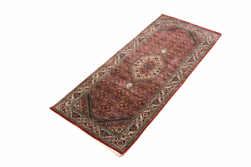 Handgeknüpfter Bidjar Teppich | Knotendichte: 320.000 – 360.000 Knoten/m² | Material: Wolle (Flor), Baumwolle (Kette) | Größe: 207×84 cm | Zustand: Neu | Farbe: Rot/Orange | Form: Läufer