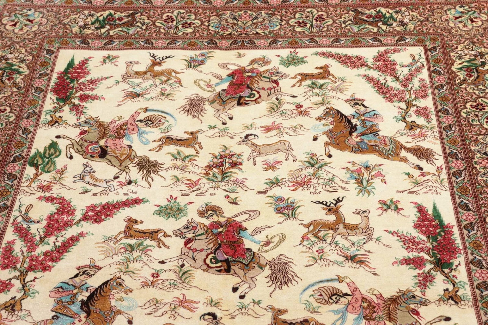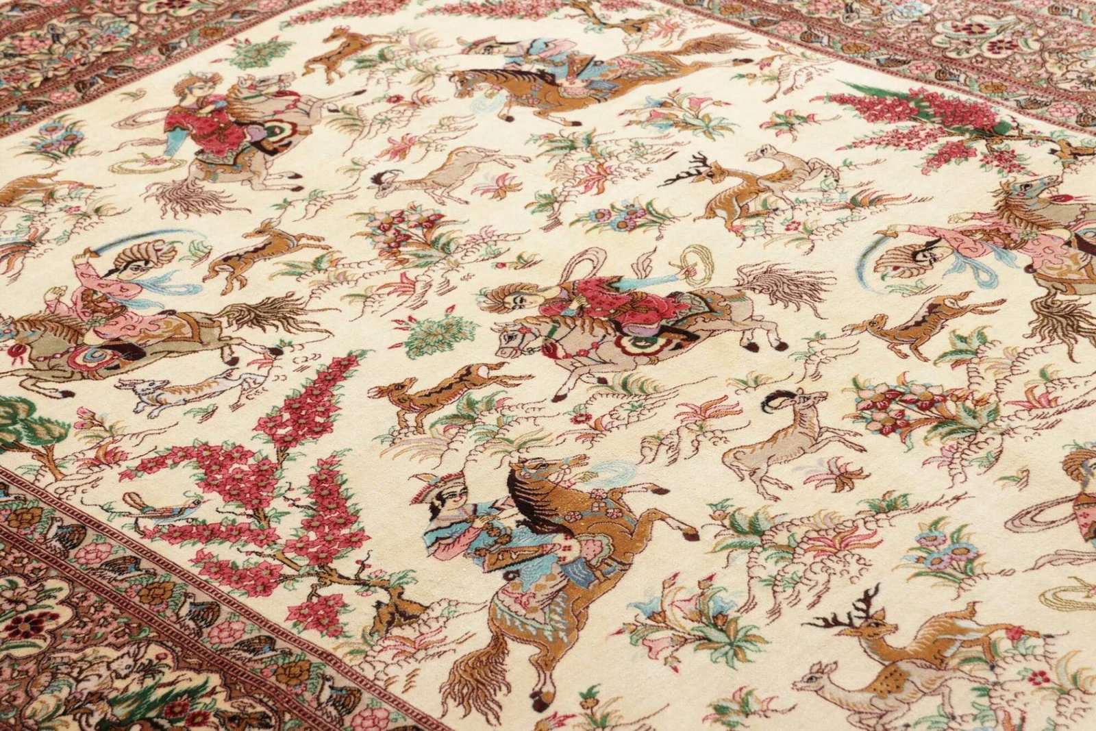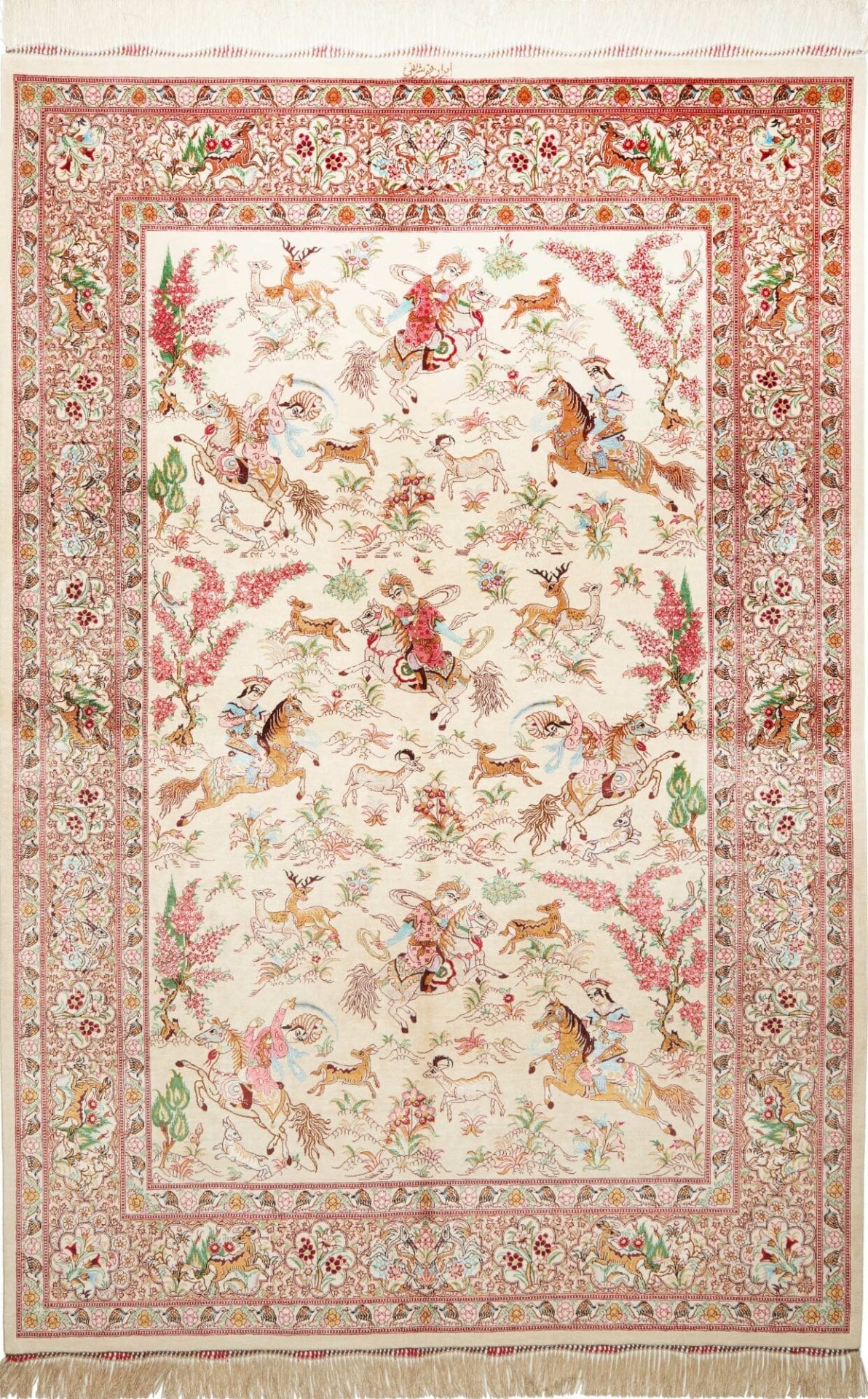 16871$Ursprünglicher Preis war: 16871$13467$Aktueller Preis ist: 13467$Ghom Teppich | Knotendichte: 900.000 Knoten/m² | Material: 100% Seide | Größe: 136 x 198 cm | In hervorragendem Zustand | Provenienz: Ghom, Iran | Höhe: ca. 4 mm | Handgeknüpft