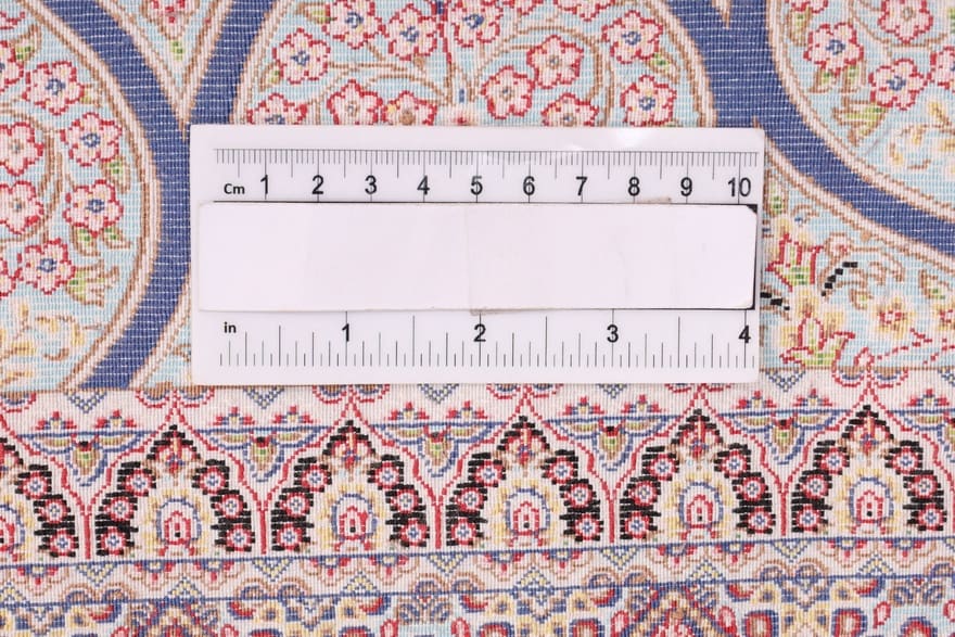 Die handgeknüpfte Technik garantiert, dass jeder Teppich ein einzigartiges Stück ist. Diese traditionelle Methode erfordert intensive Handarbeit, Geschicklichkeit und viel Erfahrung – Eigenschaften, die in jedem Knüpfpunkt sichtbar sind. Der Teppich Ghom besticht durch seine hohe Knotendichte, die nicht nur seine Strapazierfähigkeit erhöht, sondern auch die Detailtreue des Musters unterstützt.