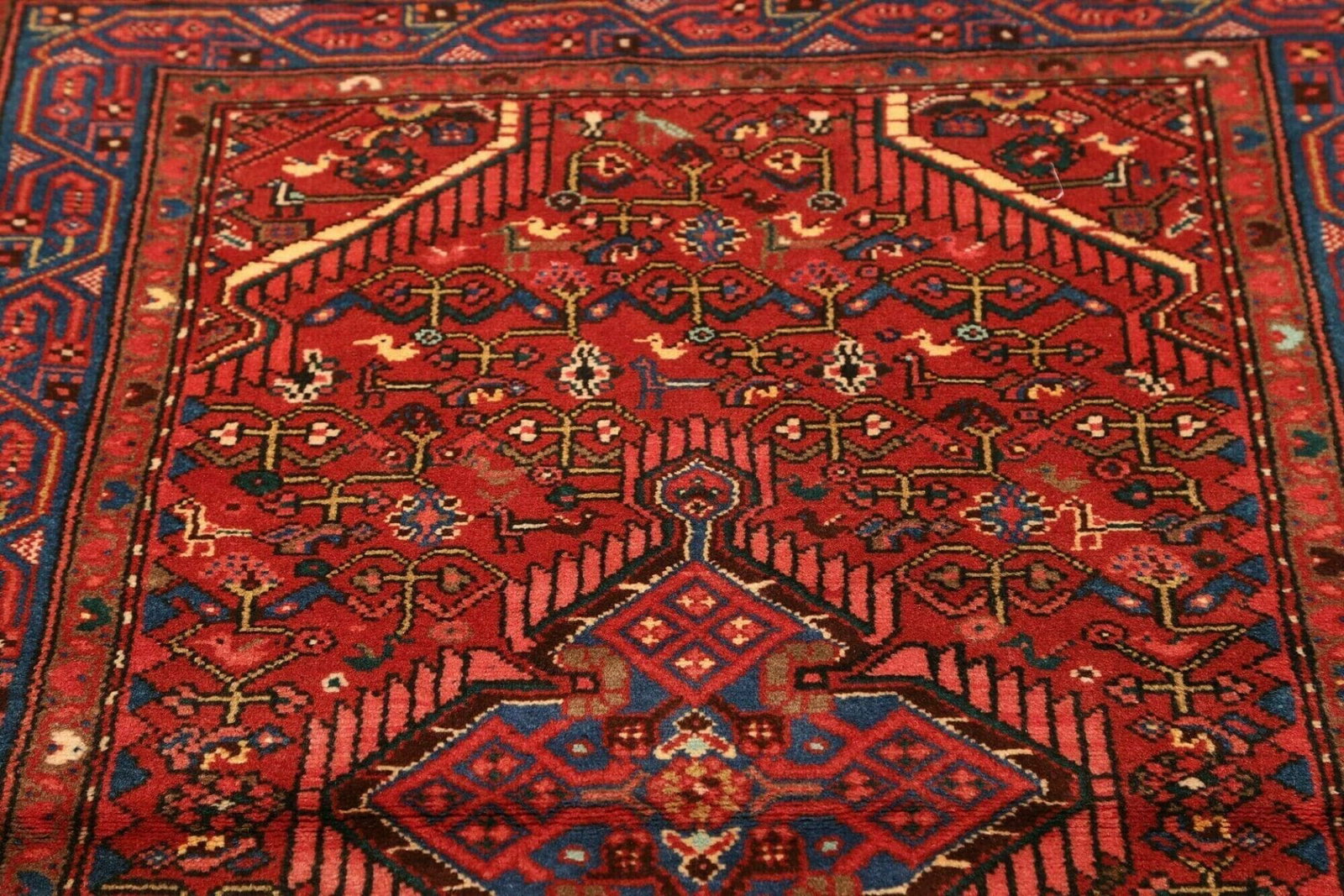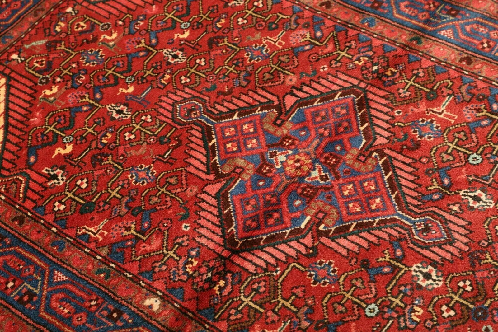 519$Ursprünglicher Preis war: 519$420$Aktueller Preis ist: 420$Hamadan Teppich | Knotendichte: ca. 200.000 Knoten/m² | Material: 100% Schurwolle | Kette: 100% Baumwolle | Größe: 106 x 159 cm | Handgeknüpft | Herkunft: Iran | Zustand: Sehr gut | Muster: Herati und geometrische Muster
