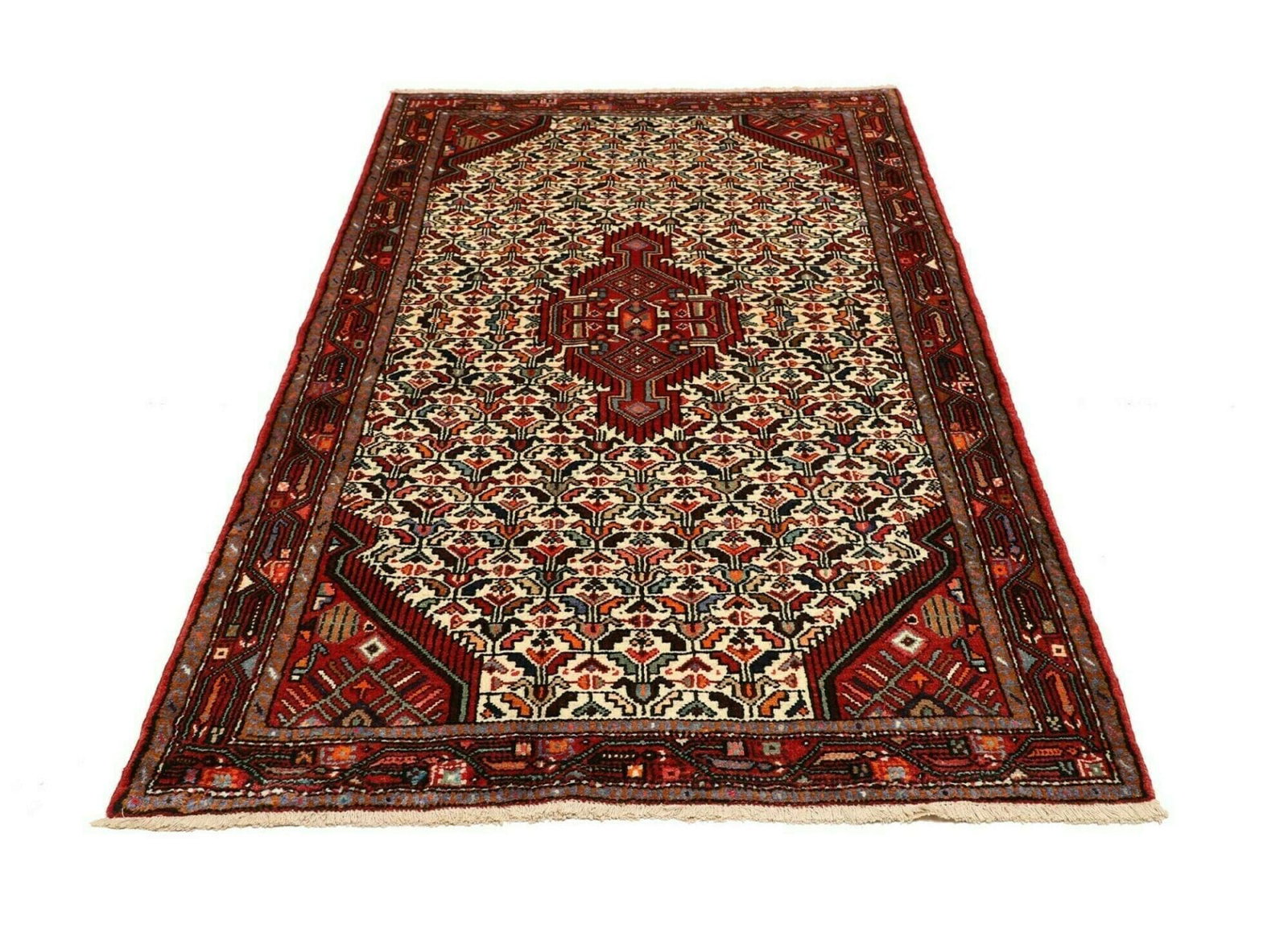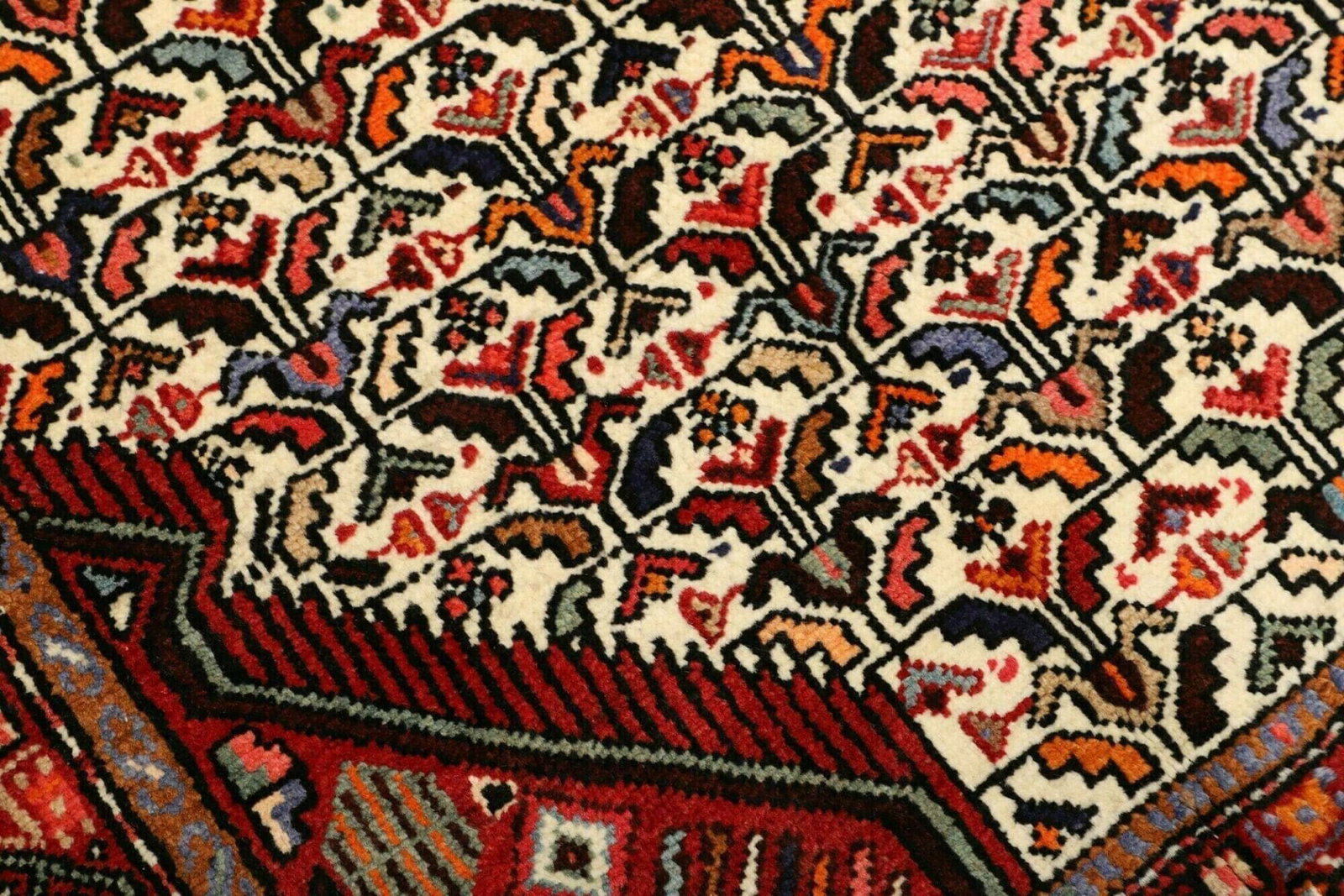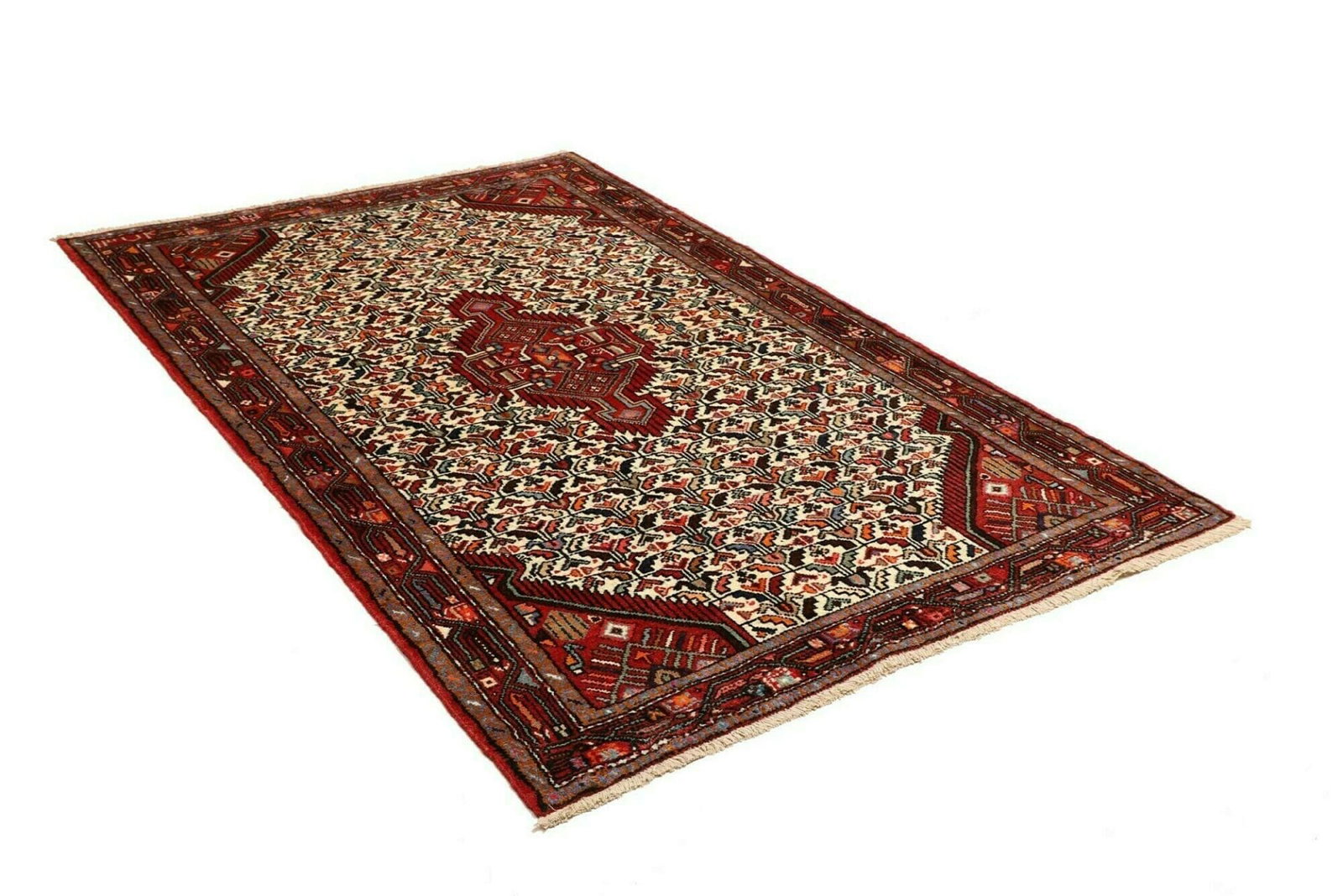 Hamadan Teppich | Knotendichte: ca. 200.000 Knoten/m² | Material: 100% Schurwolle (Flor), 100% Baumwolle (Kette) | Größe: 131 x 208 cm | Höhe: ca. 10-12mm | Muster: Herati und geometrische Muster | Herkunft: Iran | Zustand: Handgeknüpft und in ausgezeichnetem Zustand
