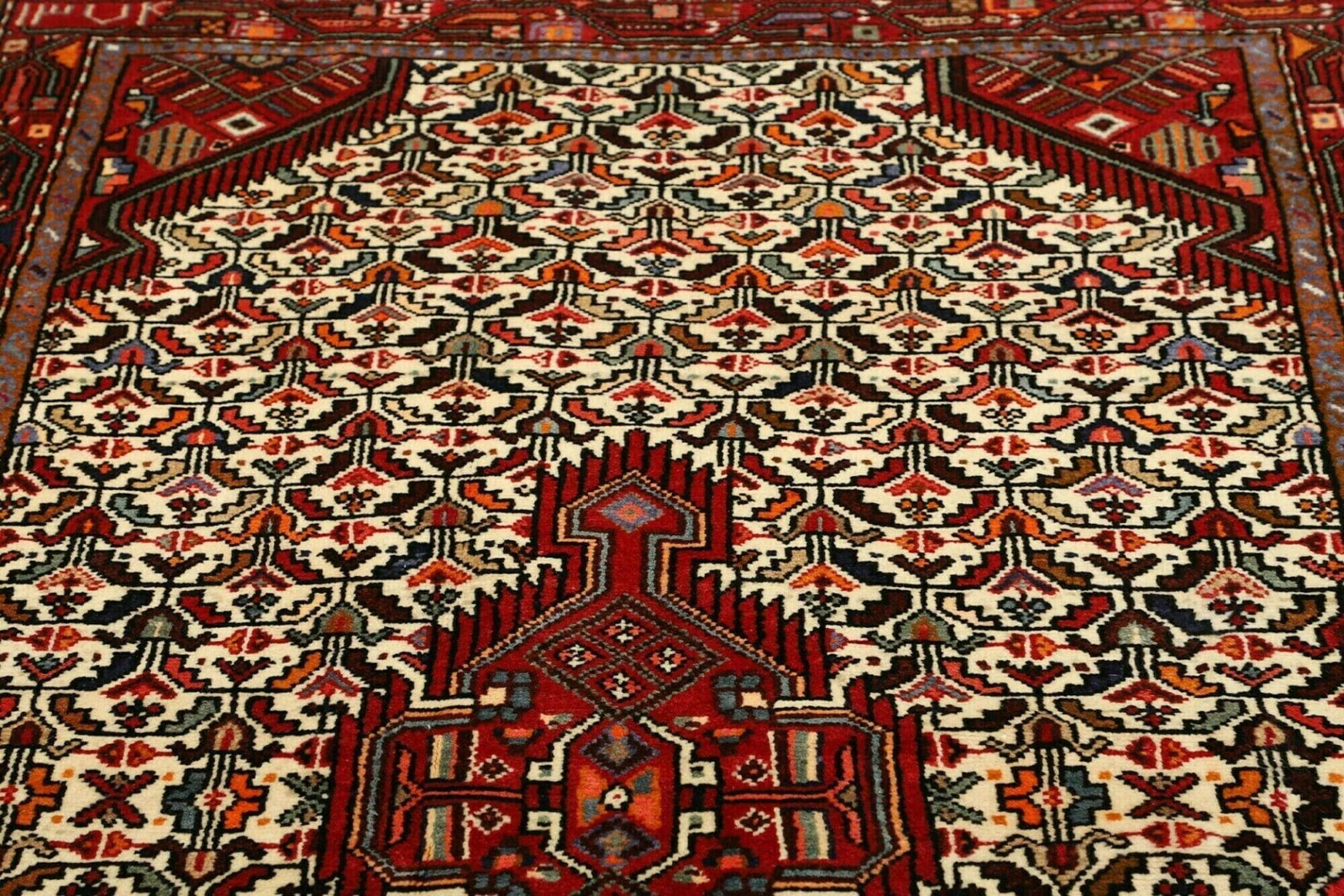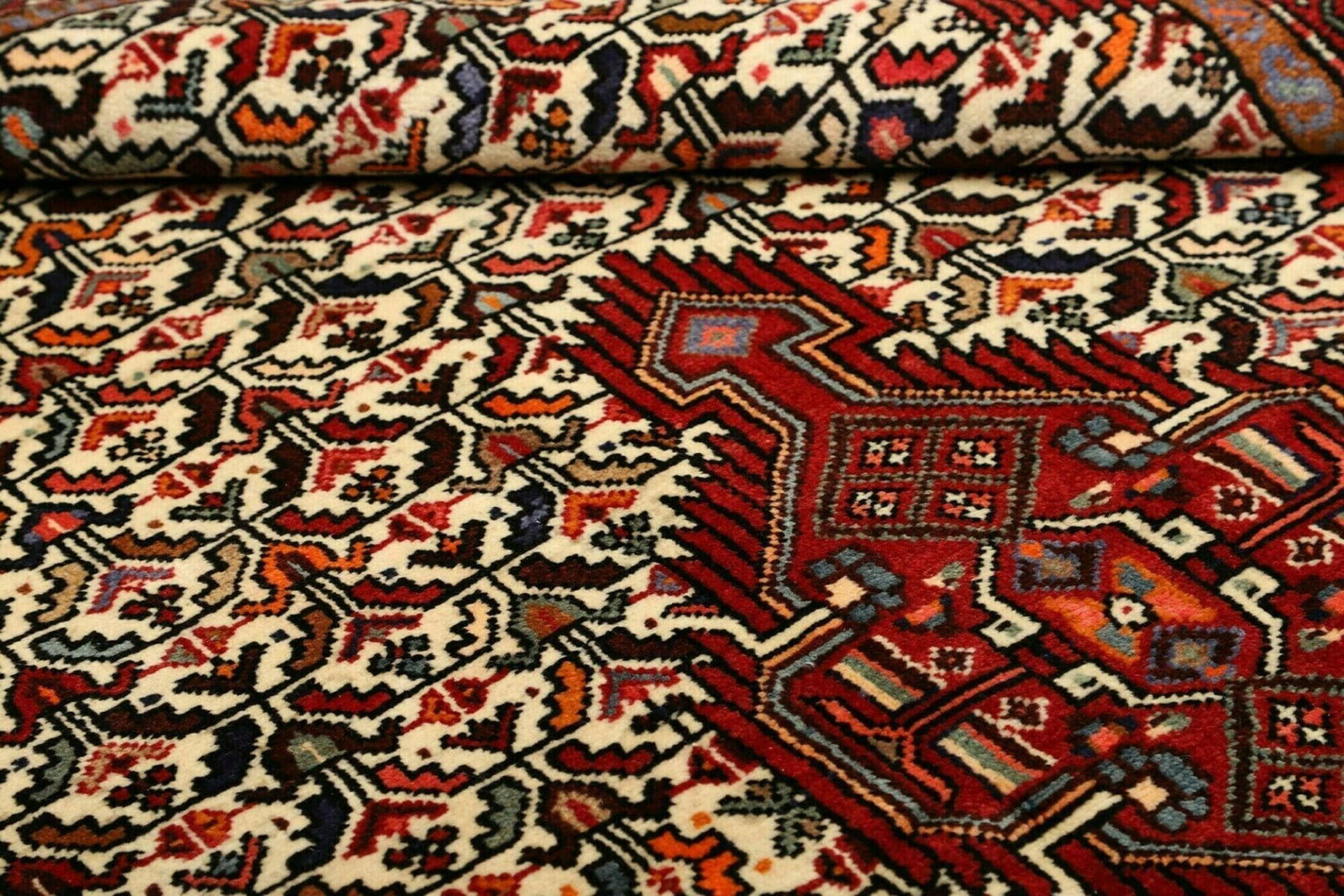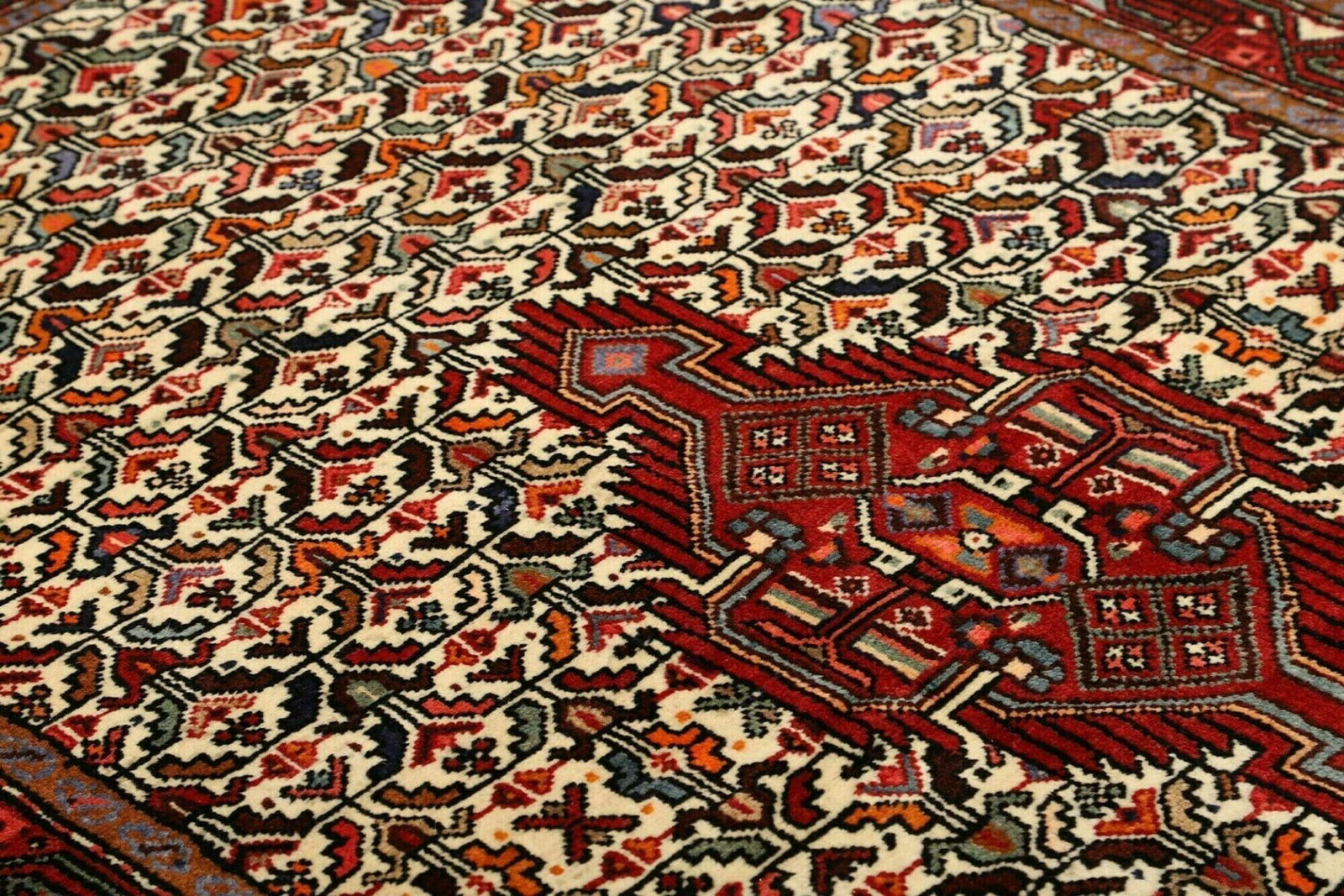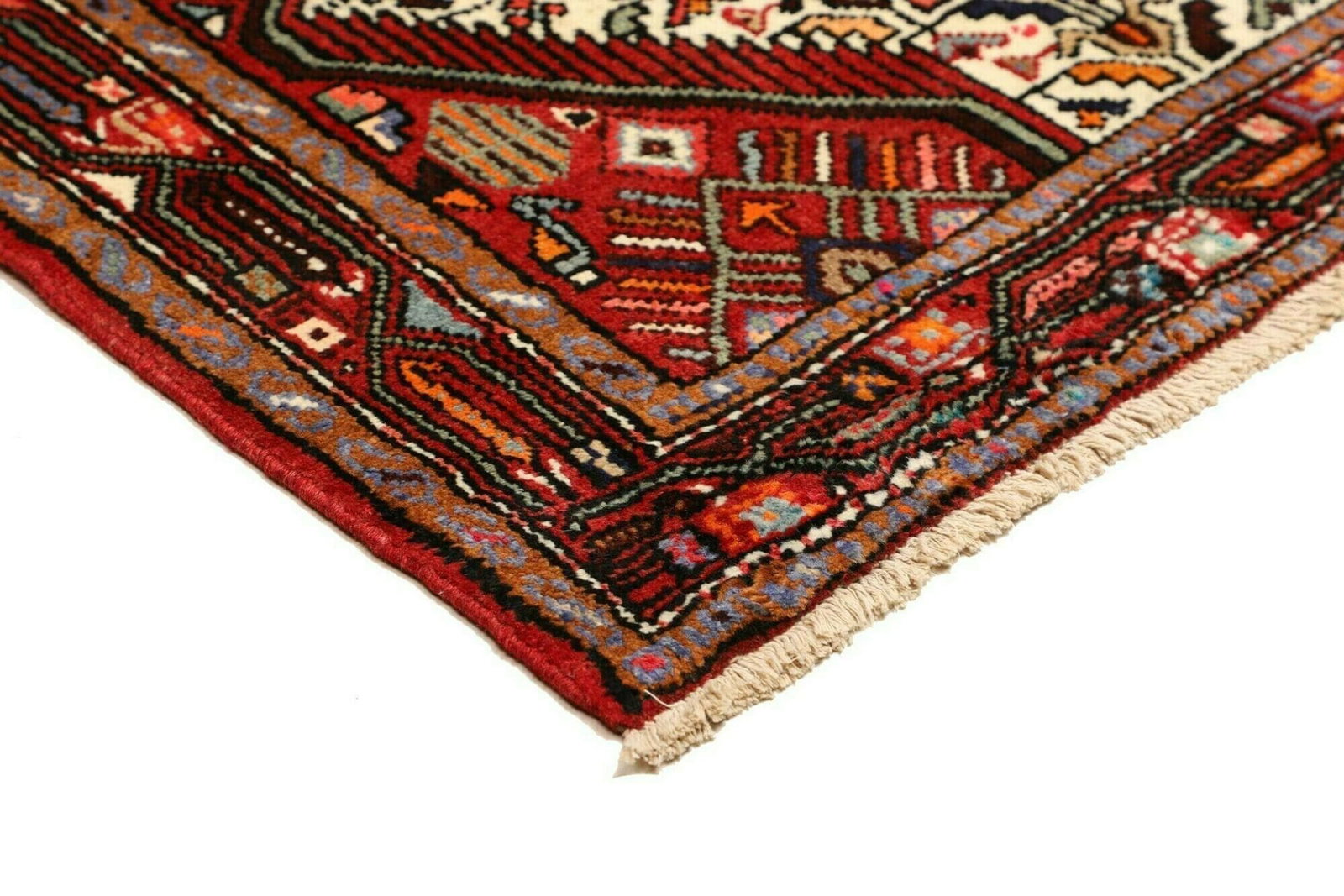 Hamadan Teppich | Knotendichte: ca. 200.000 Knoten/m² | Material: 100% Schurwolle (Flor), 100% Baumwolle (Kette) | Größe: 131 x 208 cm | Höhe: ca. 10-12mm | Muster: Herati und geometrische Muster | Herkunft: Iran | Zustand: Handgeknüpft und in ausgezeichnetem Zustand