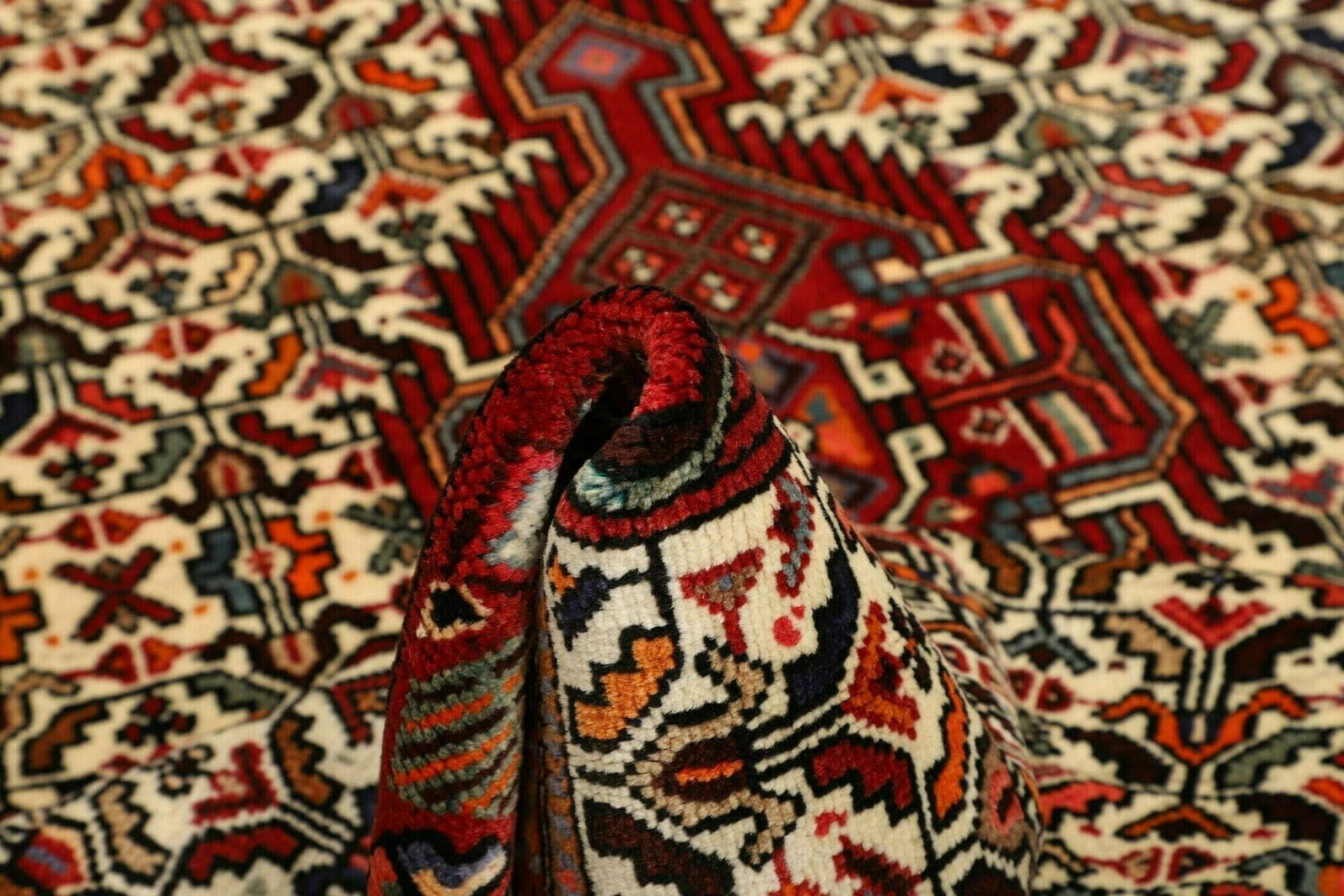 Die Tradition des Teppichknüpfens in Hamadan ist stark mit den dort lebenden nomadischen Stämmen verbunden, die stolz auf ihre Geschichten und Symbole sind, die in den Mustern ihrer Teppiche dargestellt werden. Diese Teppiche werden oft in lebendigen Farben und komplexen Mustern hergestellt, die tiefere Bedeutungen haben. Das Herati-Muster, das hier verwendet wird, symbolisiert häufig Gesundheit und Wohlergehen.