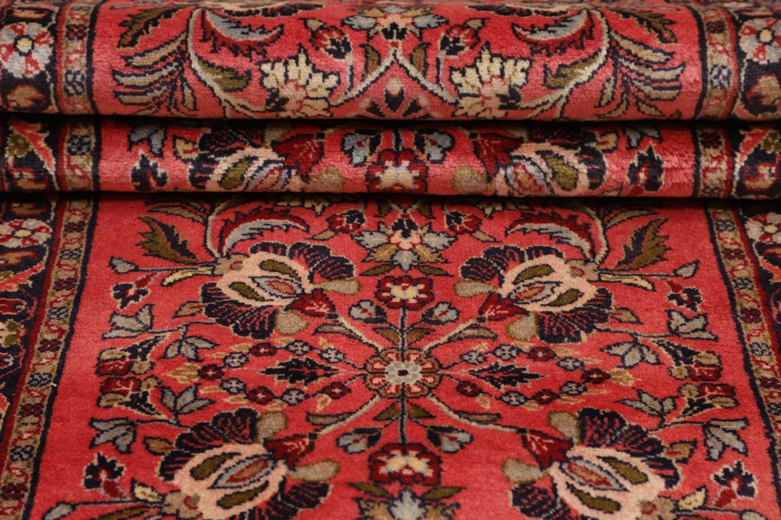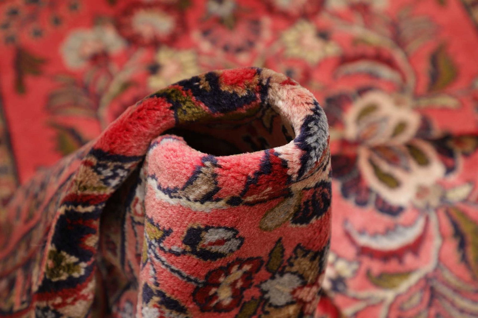 Der Teppich besteht aus hochwertiger Wolle, die für ihre Langlebigkeit und den angenehmen Griff bekannt ist. Die verwendete Wolle ist nicht nur widerstandsfähig, sondern sorgt auch für eine ansprechende Textur und eine hervorragende Farbtiefe. Für die Knotentechnik kommen über 250.000 Knoten pro Quadratmeter zum Einsatz, was diesen Teppich zu einem besonders feinen und detailreichen Kunstwerk macht. Diese hohe Knotendichte verleiht dem Teppich eine außergewöhnliche Stabilität und Langlebigkeit.