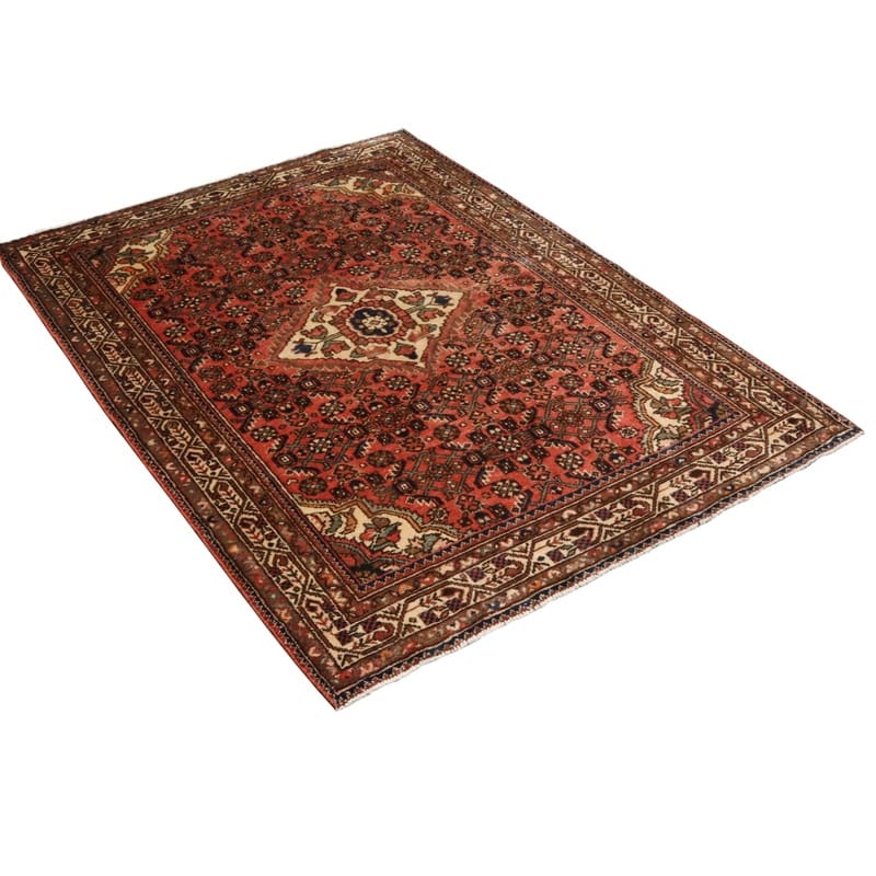 Handgeknüpfter HOSEANABAD Teppich | Knotendichte: 128.000 – 160.000 Knoten/m² | Material: Hochwertige Wolle | Größe: 212×151 cm | In neuzeitlichem Zustand | Ursprung: Iran / Persien | Farbe: Rot/Orange | Form: Rechteckig | Dicke: ca. 14 mm | Gewicht: ca. 8 kg