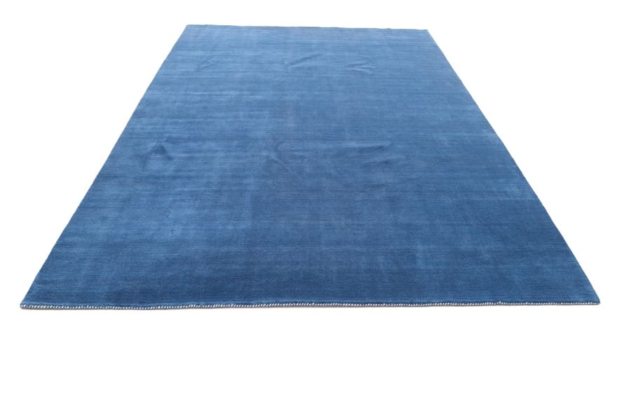 Der Gabbeh Teppich zeichnet sich durch eine intensive blaue Farbgebung aus, die in Kombination mit Türkis einen besonderen optischen Reiz erzeugt. Die rechteckige Form des Teppichs und die harmonischen Farbnuancen machen ihn zu einem idealen Gestaltungselement für moderne Wohnräume. Die Muster sind oft einfach und geometrisch, was den Teppich zeitlos und vielseitig einsetzbar macht. Solche Designs sind charakteristisch für die Gabbeh-Tradition und reflektieren die Lebensweise der nomadischen Kulturen.