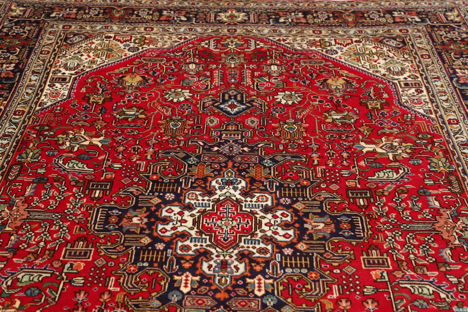 Ein Täbriz-Teppich ist vielseitig einsetzbar und eignet sich hervorragend für Wohnzimmer, Esszimmer oder Schlafzimmer. Seine eleganten Designs und Farben bringen Wärme und Stil in jeden Raum und machen ihn zum idealen Mittelpunkt für Ihre Einrichtung.