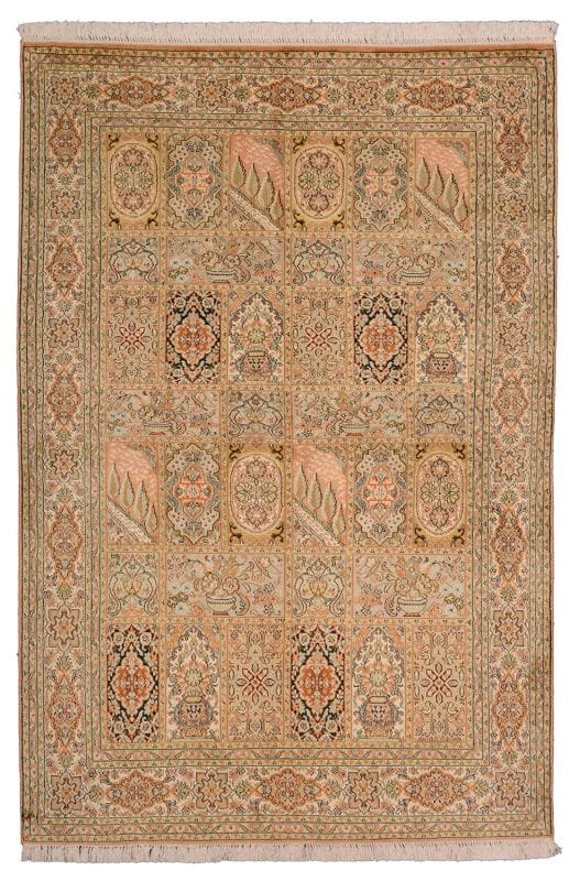Orientteppich Kashmirseide 123 x 183 cm, pastellfarbig, handgeknüpft