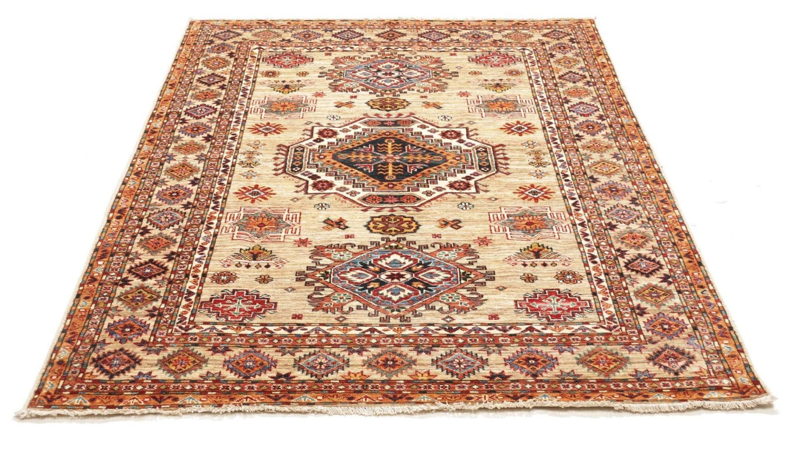 2099$Ursprünglicher Preis war: 2099$1458$Aktueller Preis ist: 1458$Kazak Teppich | Größe: 153 x 203 cm | Knotendichte: ca. 200.000 Knoten/m² | Flor: 100% Schurwolle | Kette: 100% Baumwolle | Verarbeitung: Handgeknüpft | Herkunft: Pakistan | Zustand: Sehr gut