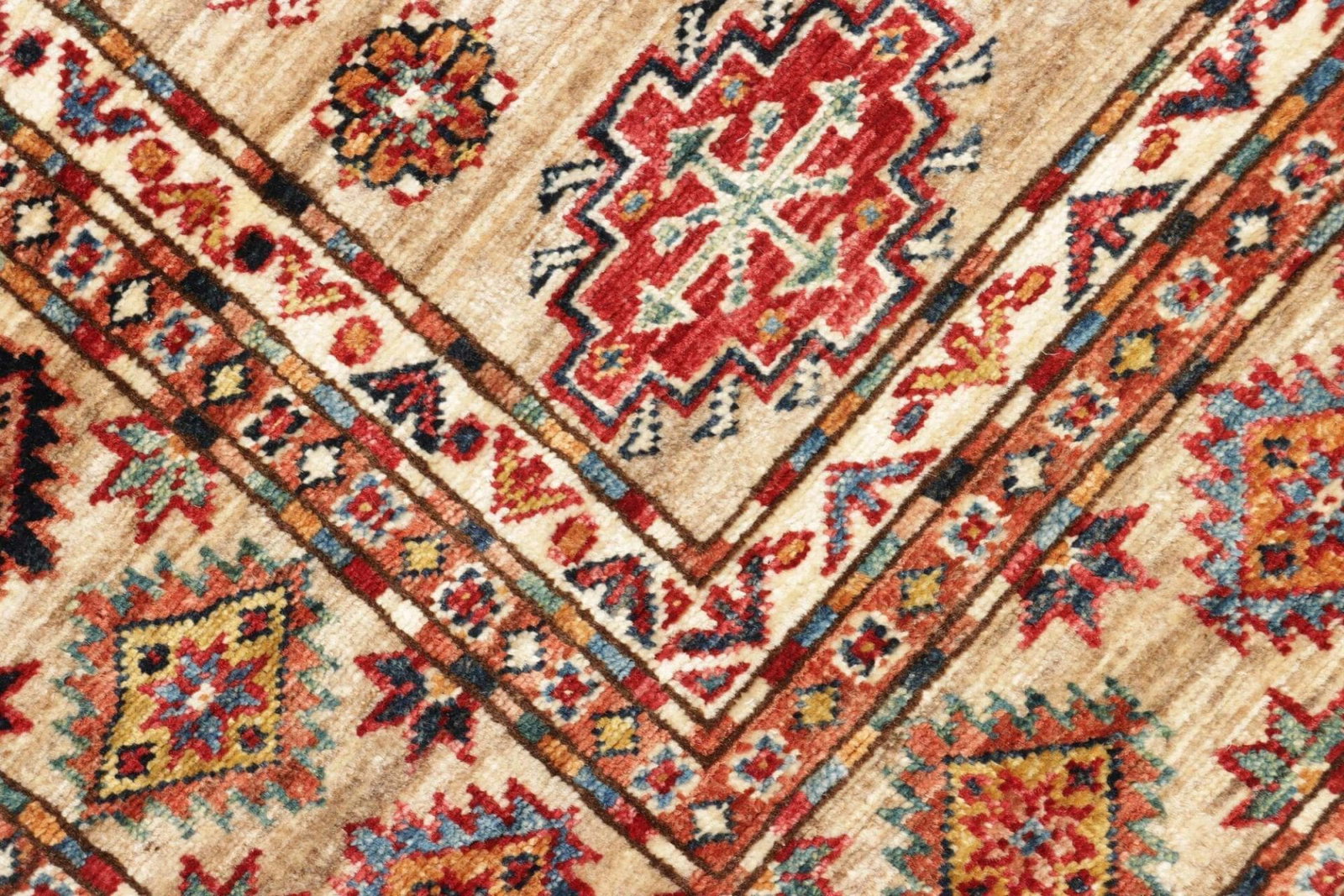 Der Kaukasus ist nicht nur für seine beeindruckenden Landschaften bekannt, sondern auch für die Vielfalt der Strukturen und Designs, die in seinen Teppichen zu finden sind. Kazak Teppiche sind häufig für ihre geometrischen Muster und kräftigen Farben geschätzt, die die reiche Geschichte und die Traditionen der Region widerspiegeln.