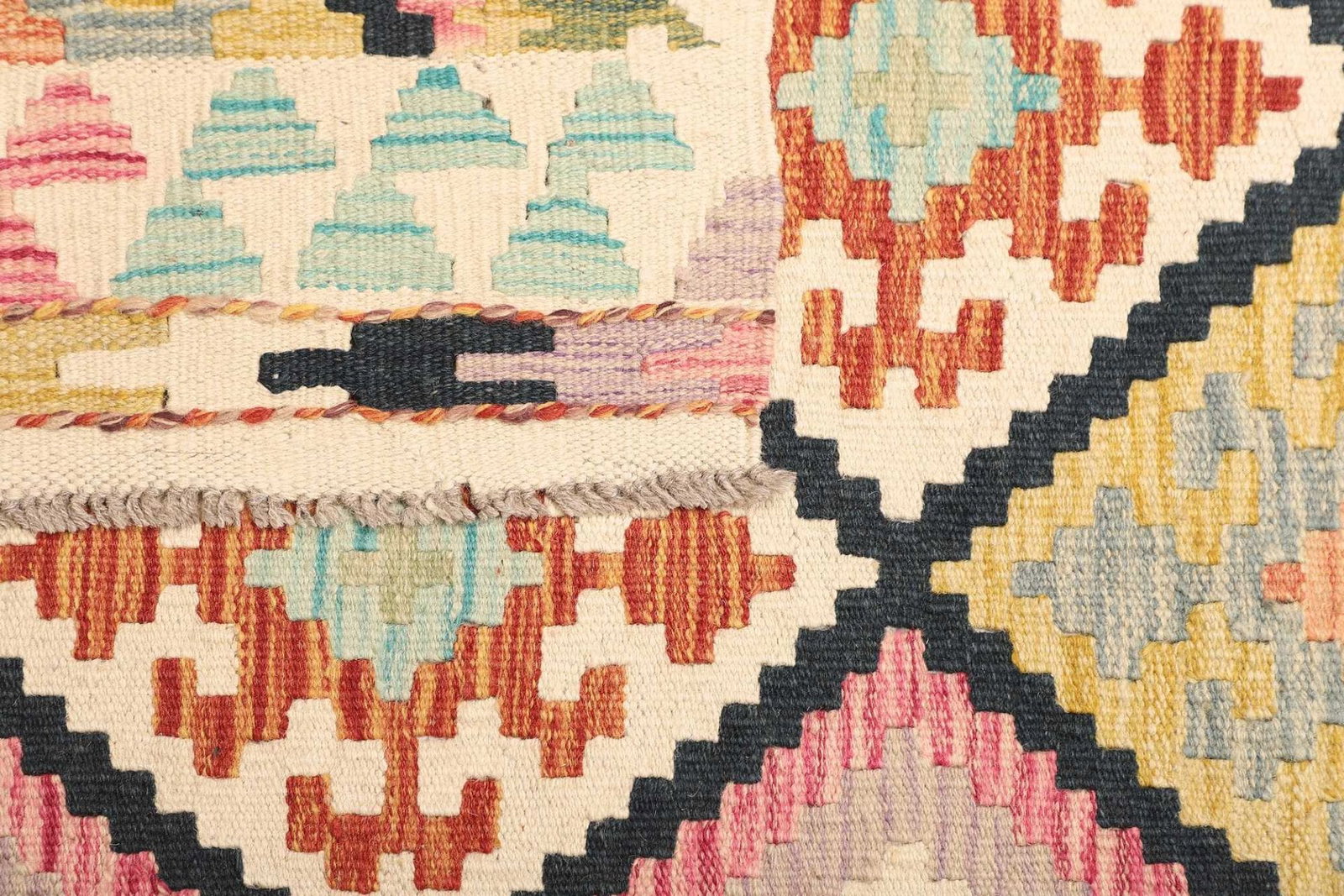 Die Schurwolle, aus der dieser Teppich gefertigt wurde, ist nicht nur weich und angenehm zu berühren, sondern auch besonders robust. Schurwolle hat die Fähigkeit, die Raumtemperatur zu regulieren und gleichzeitig Feuchtigkeit abzuleiten, wodurch ein gesundes Raumklima gefördert wird. Dieser Kelim-Teppich zeigt die hohe Kunst des Handwebens, die eine lange Tradition in der Orientteppichfertigung hat. Diese Technik sorgt dafür, dass jedes Stück ein Unikat ist, das mit höchster Sorgfalt und Liebe zum Detail hergestellt wurde.