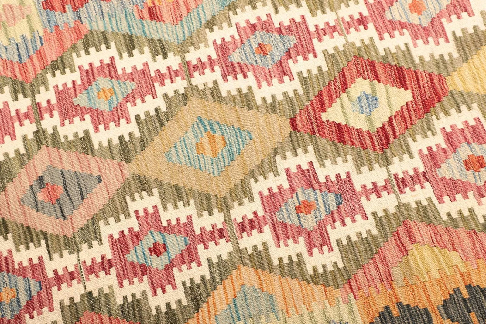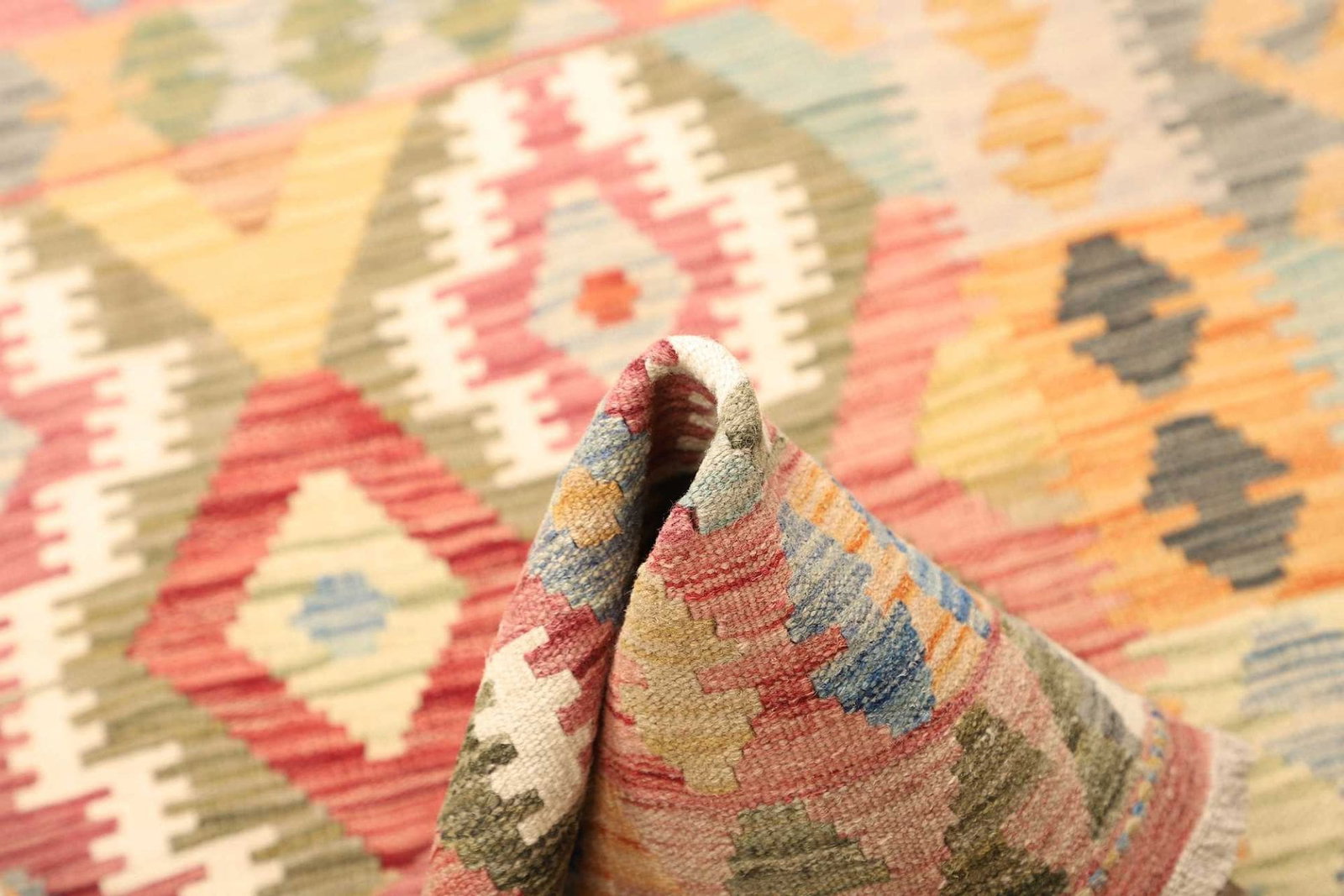 Die Vielseitigkeit des Kelims ermöglicht es, ihn in unterschiedlichen Räumen und Stilen zu integrieren, sei es im Wohnzimmer, Esszimmer oder Schlafzimmer. Sein zeitloses Design sorgt dafür, dass er immer im Trend bleibt und nie aus der Mode kommt.