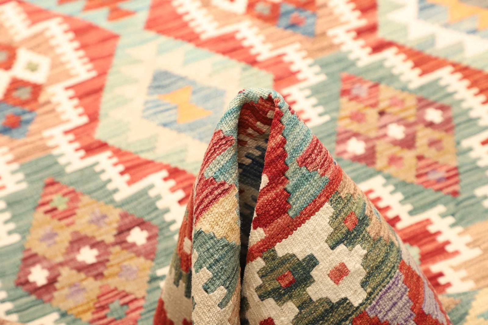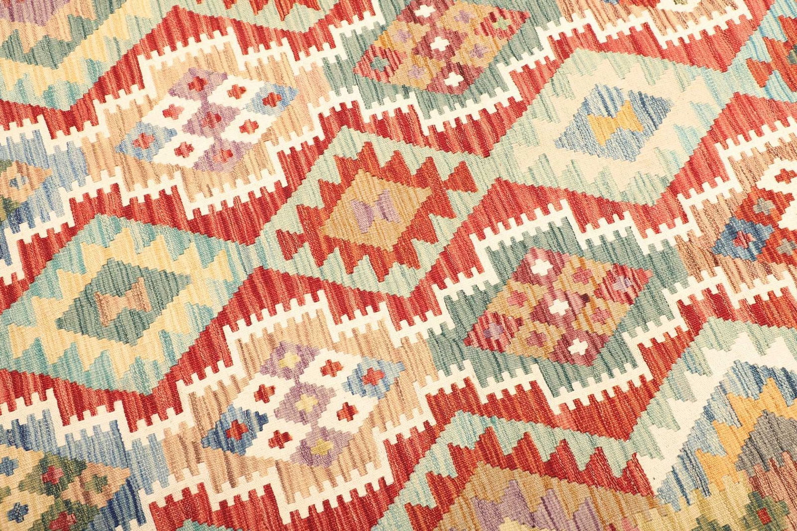 Der Orientteppich Kelim ist aus hochwertiger Schurwolle gefertigt, die für ihre Langlebigkeit und Pflegeleichtigkeit bekannt ist. Schurwolle hat die Fähigkeit, Wärme zu speichern und gleichzeitig für eine angenehme Fußkälte im Sommer zu sorgen. Das handgewebte Verfahren verleiht dem Teppich zudem eine besondere Struktur und Oberflächenbeschaffenheit, die den Teppich nicht nur schön, sondern auch funktional macht. Die Kombination aus erlesener Wolle und traditioneller Webtechnik sorgt dafür, dass dieser Teppich Ihnen viele Jahre Freude bereiten wird.