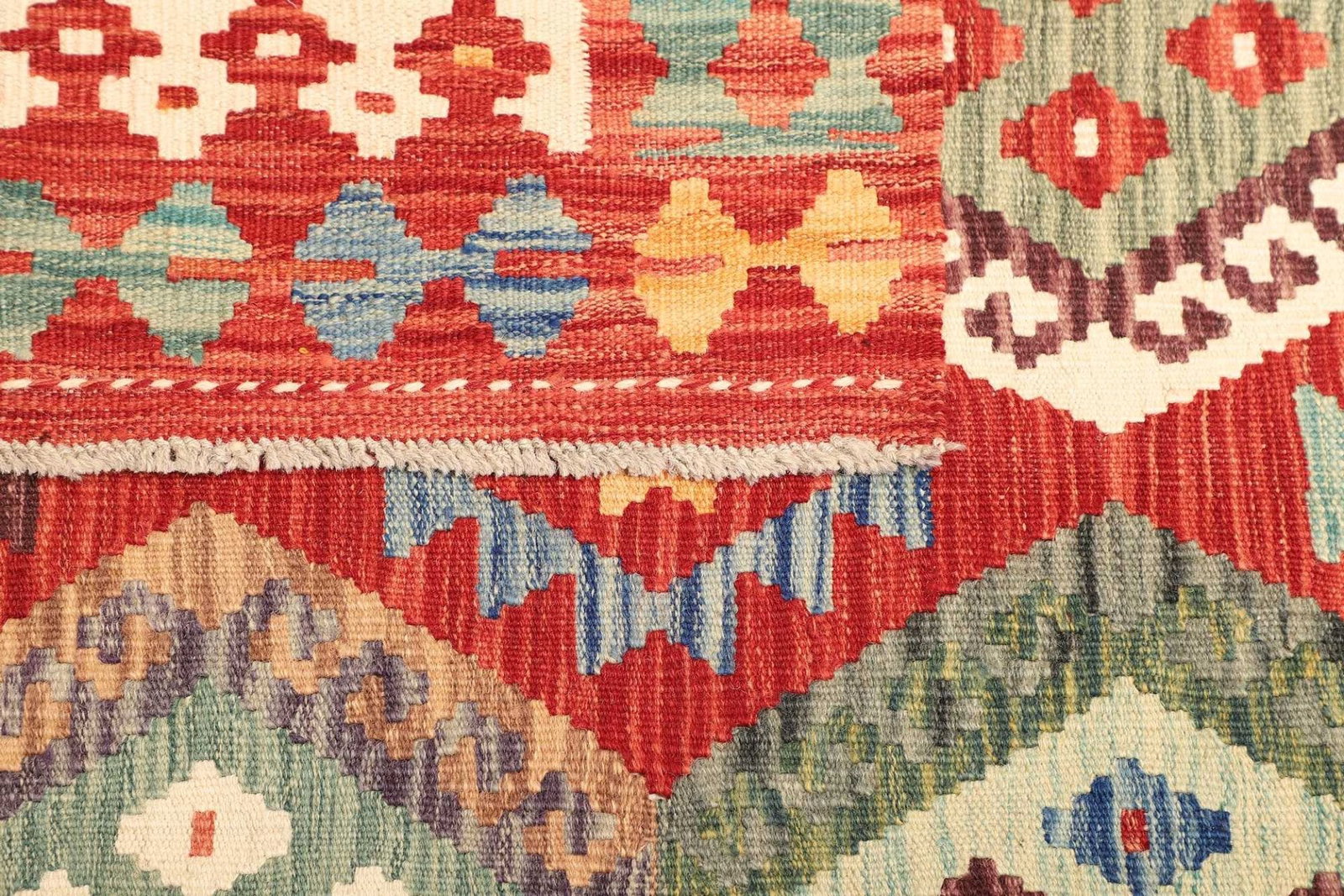 971$ In den WarenkorbKelim 215 x 144 cm – Handgewebt mit identischem Muster auf Vorder- und Rückseite – Orientteppich