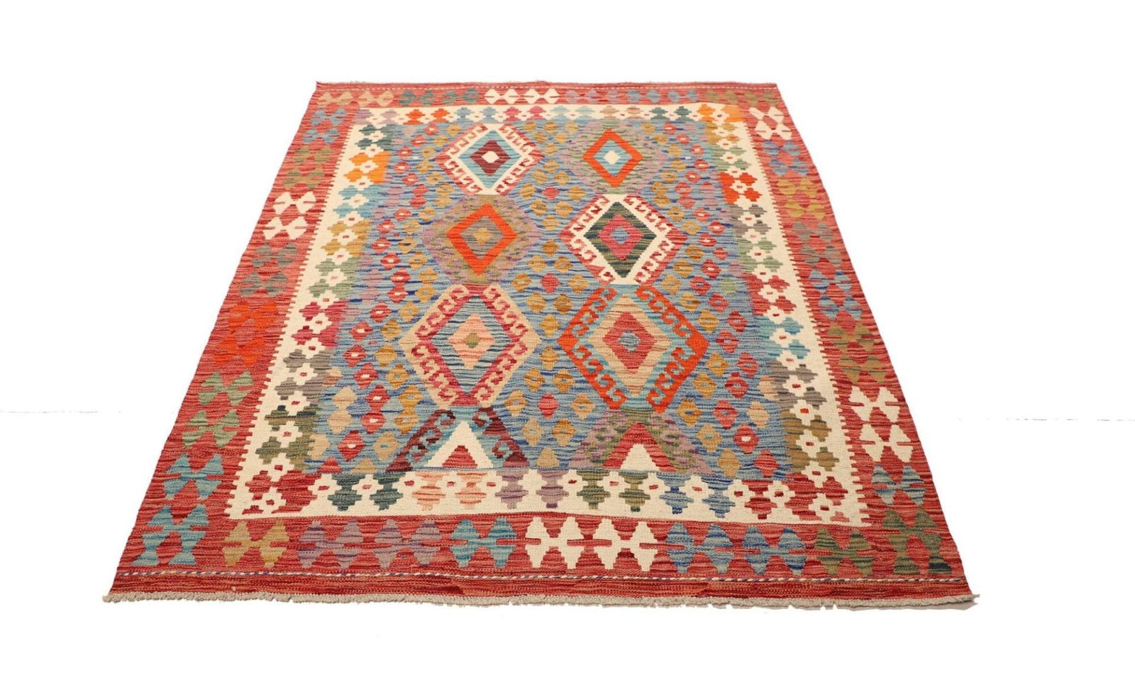 519$Ursprünglicher Preis war: 519$430$Aktueller Preis ist: 430$Kelim Teppich | Knotendichte: ca. 200.000 Knoten/m² | Material: 100% Schurwolle | Größe: 159 x 192 cm | Zustand: Handgewebt | Herkunft: Pakistan | Florhöhe: ca. 5 mm | Kette: 100% Baumwolle
