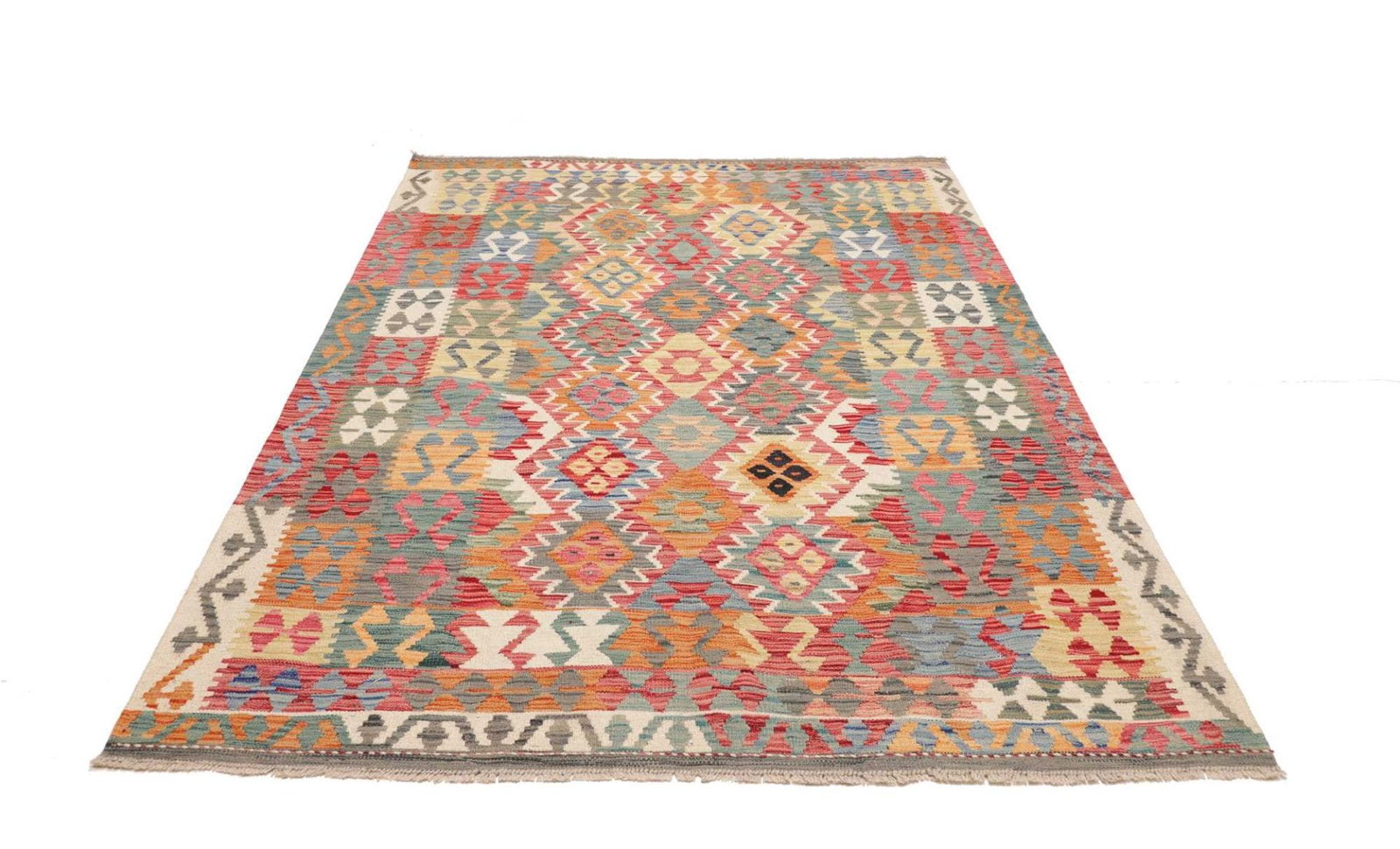 687$Ursprünglicher Preis war: 687$600$Aktueller Preis ist: 600$Handgewebter Kelim | Knotendichte: ca. 200.000 / m² | Material: Flor: 100% Schurwolle, Kette: 100% Baumwolle | Größe: 172 x 236 cm | Herkunft: Pakistan