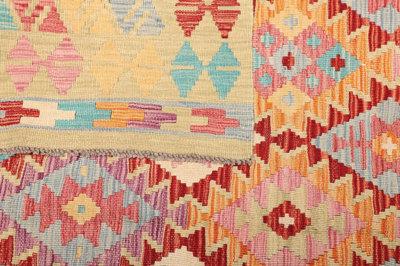 Ein besonderes Merkmal dieses Teppichs ist die Technik der Handwebung, die traditionsreiche Handwerkskunst erfordert und dem Teppich eine individuelle Note verleiht. Jeder Kelim erzählt seine eigene Geschichte und verbindet dabei traditionelle Herstellungsverfahren mit modernem Design. Die handpickte Knotendichte sorgt dafür, dass der Teppich auch bei intensiver Nutzung seine Form und Farbe behält.