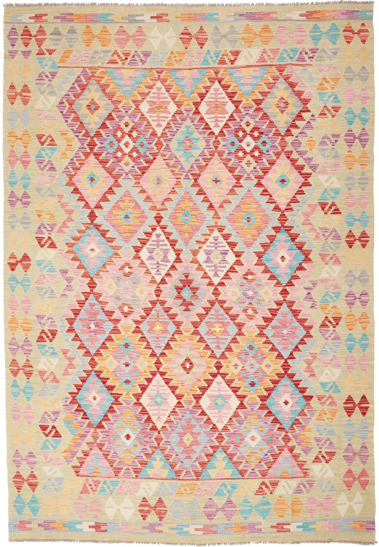 Handgewebter Wollteppich Ghashgai Kelim in Naturfarbe – Maße: 292 x 206 cm