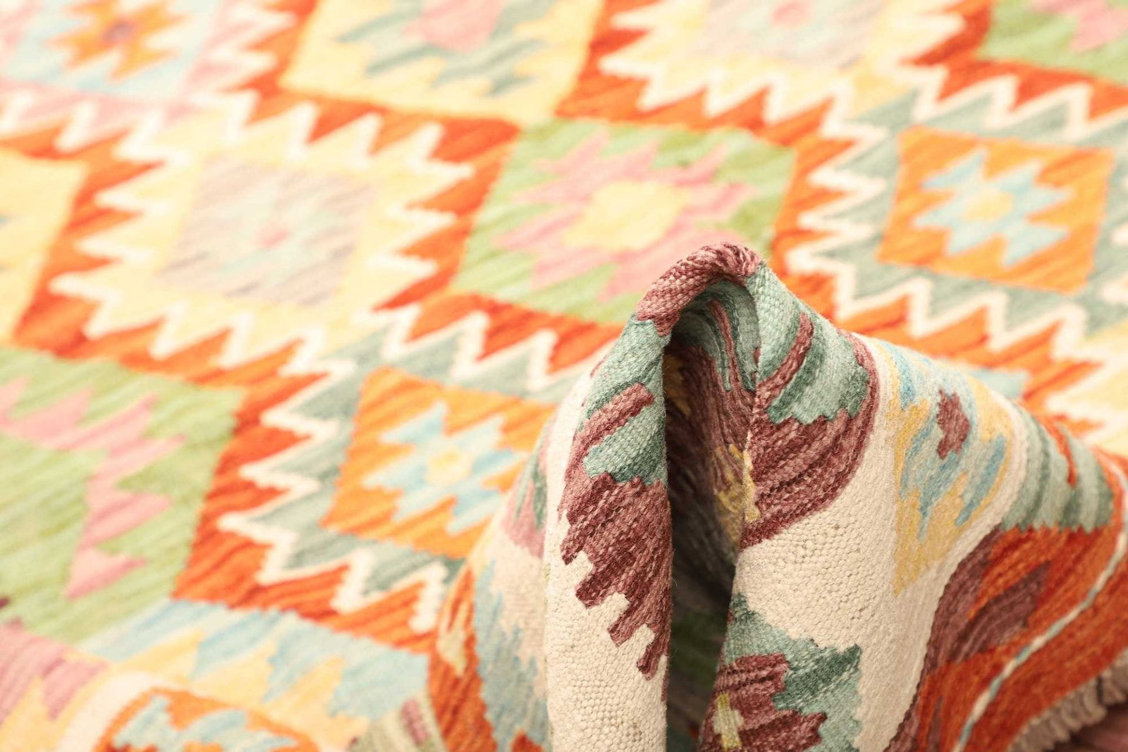 Ein weiterer Vorteil des handgewebten Orientteppichs Kelim ist seine Vielseitigkeit. Er lässt sich sowohl in traditionellen als auch in modernen Wohnräumen problemlos integrieren. Die strapazierfähigen Eigenschaften der Schurwolle bringen nicht nur eine lange Lebensdauer, sondern auch eine mühelose Pflege mit sich. Ein regelmäßiges Staubsaugen und gelegentliche professionelle Reinigungen reichen aus, um diesen Teppich in einem hervorragenden Zustand zu halten.
