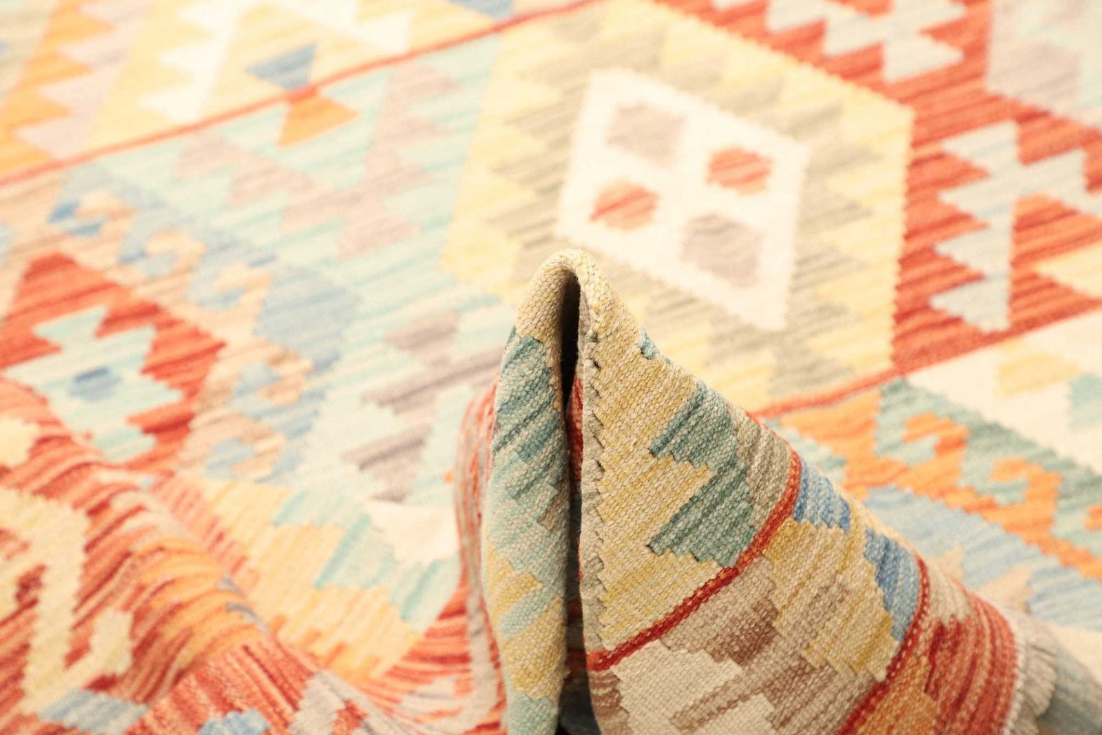 Kelim Teppich | Knotendichte: ca. 200.000 Knoten/m² | Material: 100% Schurwolle | Größe: 200×290 cm | Höhe: ca. 5 mm | Kette: 100% Baumwolle | Herkunft: Afghanistan | Handgewebte Qualität | Beidseitig verwendbar