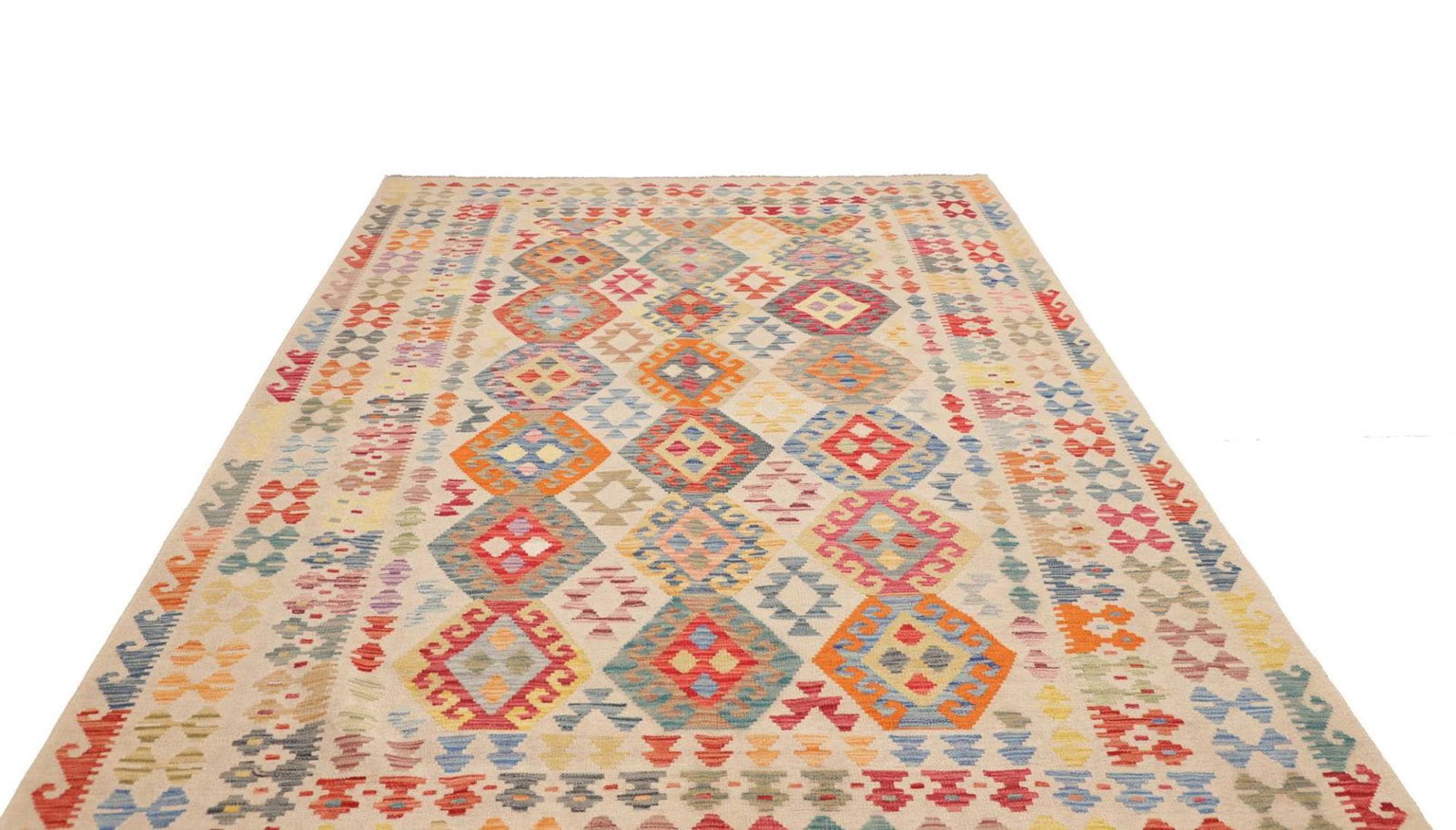 Handgewebter Kelim | Knotendichte: ca. 200.000 / m² | Material: Flor: 100% Schurwolle, Kette: 100% Baumwolle | Größe: 204 x 295 cm | Herkunft: Pakistan
