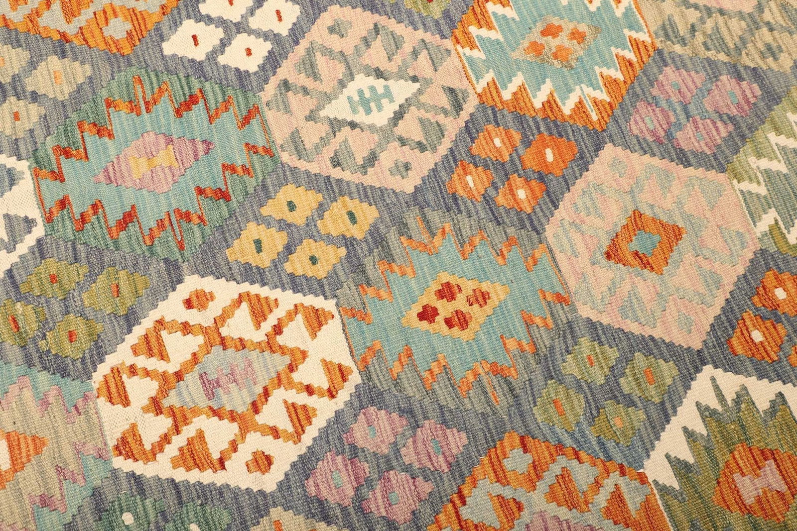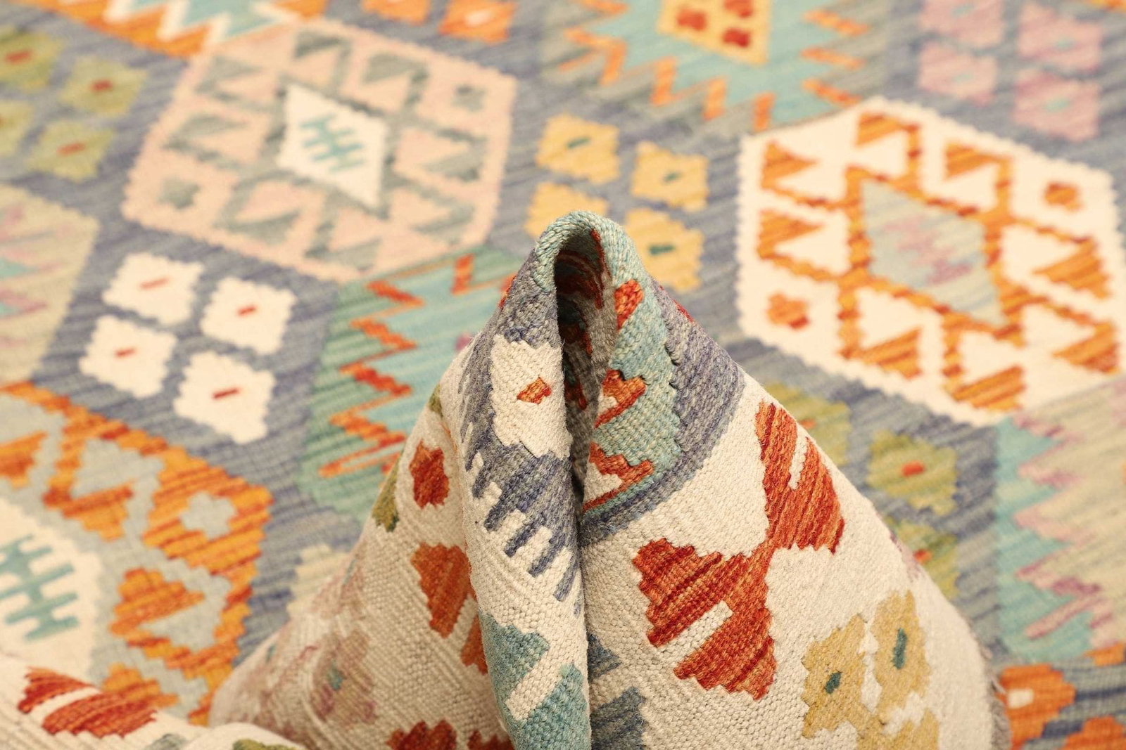 1066$Ursprünglicher Preis war: 1066$791$Aktueller Preis ist: 791$Kelim Teppich | Knotendichte: ca. 200.000 Knoten/m² | Flor: 100% Schurwolle | Kette: 100% Baumwolle | Größe: 206 x 290 cm | Zustand: Handgewebte Qualität | Herkunft: Pakistan | Rustikales Flair für moderne Wohnungen