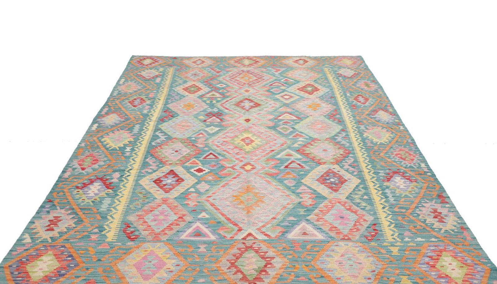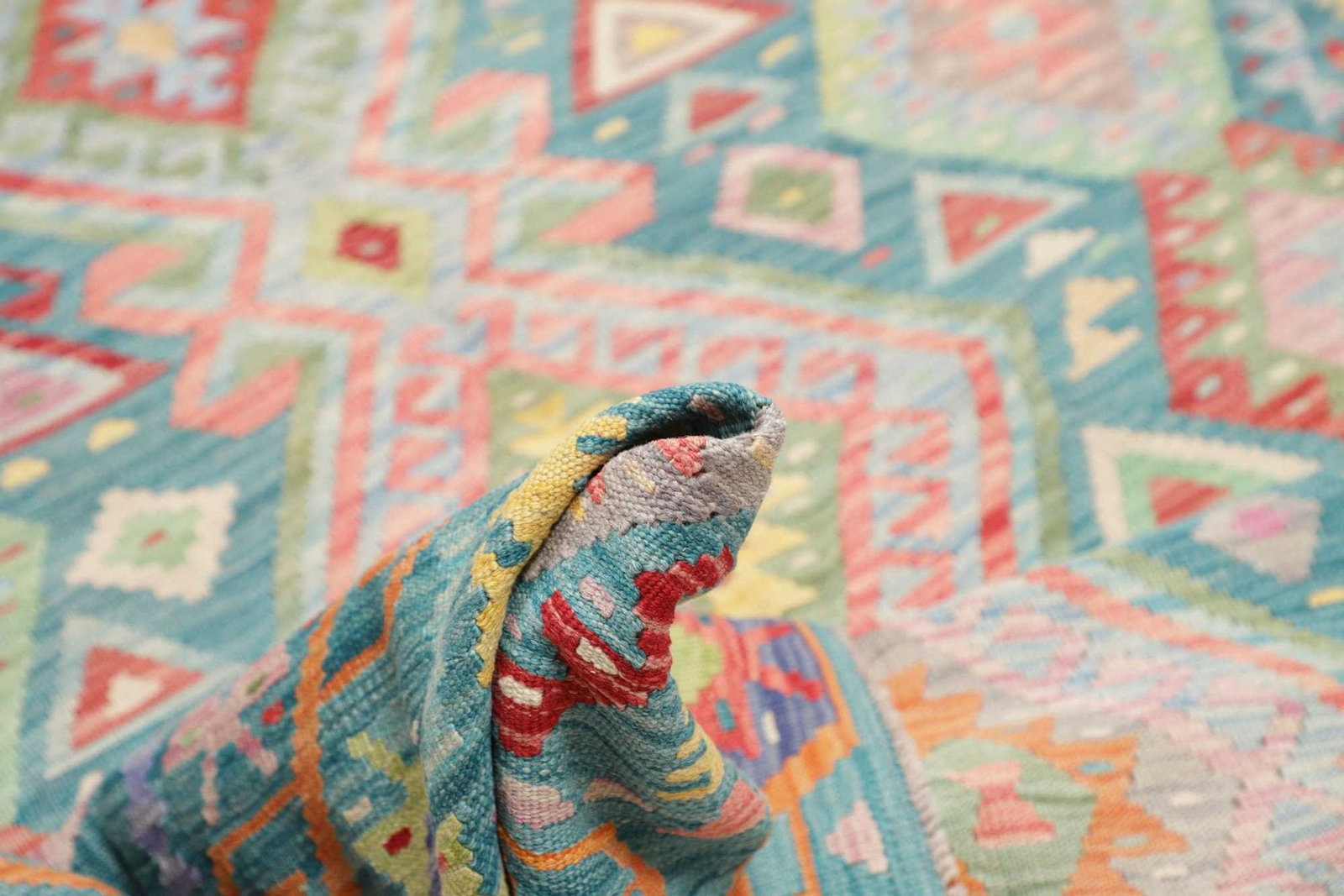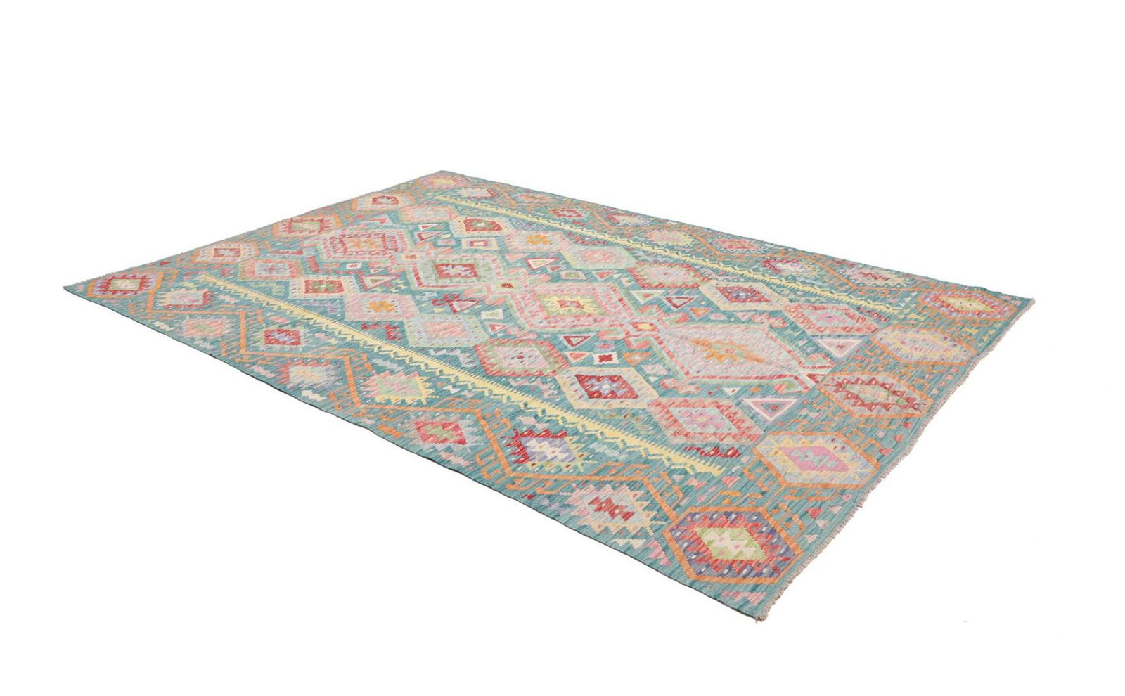 Handgewebter Kelim | Knotendichte: ca. 200.000 / m² | Material: Flor: 100% Schurwolle, Kette: 100% Baumwolle | Größe: 206 x 291 cm | Herkunft: Pakistan