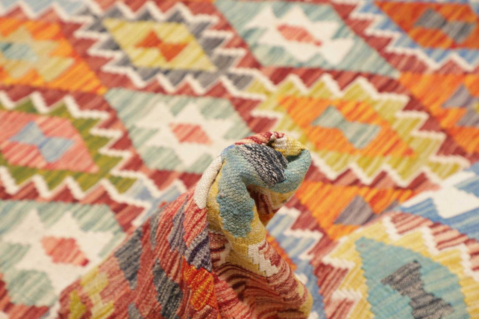 Für Kelim Teppiche wird in der Regel hochwertige Schurwolle für den Flor und strapazierfähige Baumwolle für die Kette verwendet. Diese Materialien sorgen für Langlebigkeit und eine angenehme Haptik.