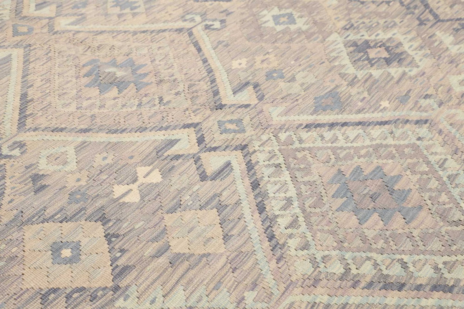 Die Herkunft dieses Kelim Teppichs ist Pakistan, ein Land, das für seine erstklassigen Teppiche bekannt ist. Pakistanische Teppiche sind berühmt für ihre hohe Knotendichte und die Verarbeitung natürlicher Wolle. Die Tradition des Teppichwebens hat in dieser Region eine lange Geschichte, die bis in die Antike zurückreicht. Kelims sind in verschiedenen Kulturen des Orients zu finden, insbesondere in der Türkei, dem Iran, Afghanistan und Nordafrika, wo sie nicht nur als Böden, sondern auch als Vorhänge, Kissen und Wandschmuck verwendet werden.