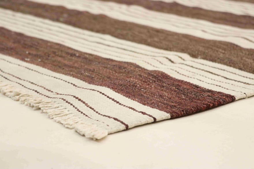 Der KELIM wird aus 100% reiner Schurwolle gefertigt, die für ihre Langlebigkeit und Strapazierfähigkeit bekannt ist. Schurwolle ist nicht nur angenehm im Griff, sondern bietet auch eine hervorragende Isolierung gegen Kälte und Wärme. Dieser Teppich ist daher sowohl für den Einsatz in Wohnräumen als auch in Eingangsbereichen ideal geeignet. Die handgewebte Technik verleiht dem Teppich eine individuelle Note und sorgt dafür, dass jedes Stück ein Unikat ist. Der sorgfältige Herstellungsprozess gewährleistet eine hohe Knotendichte, die für die Festigkeit und Robustheit des KELIM entscheidend ist.