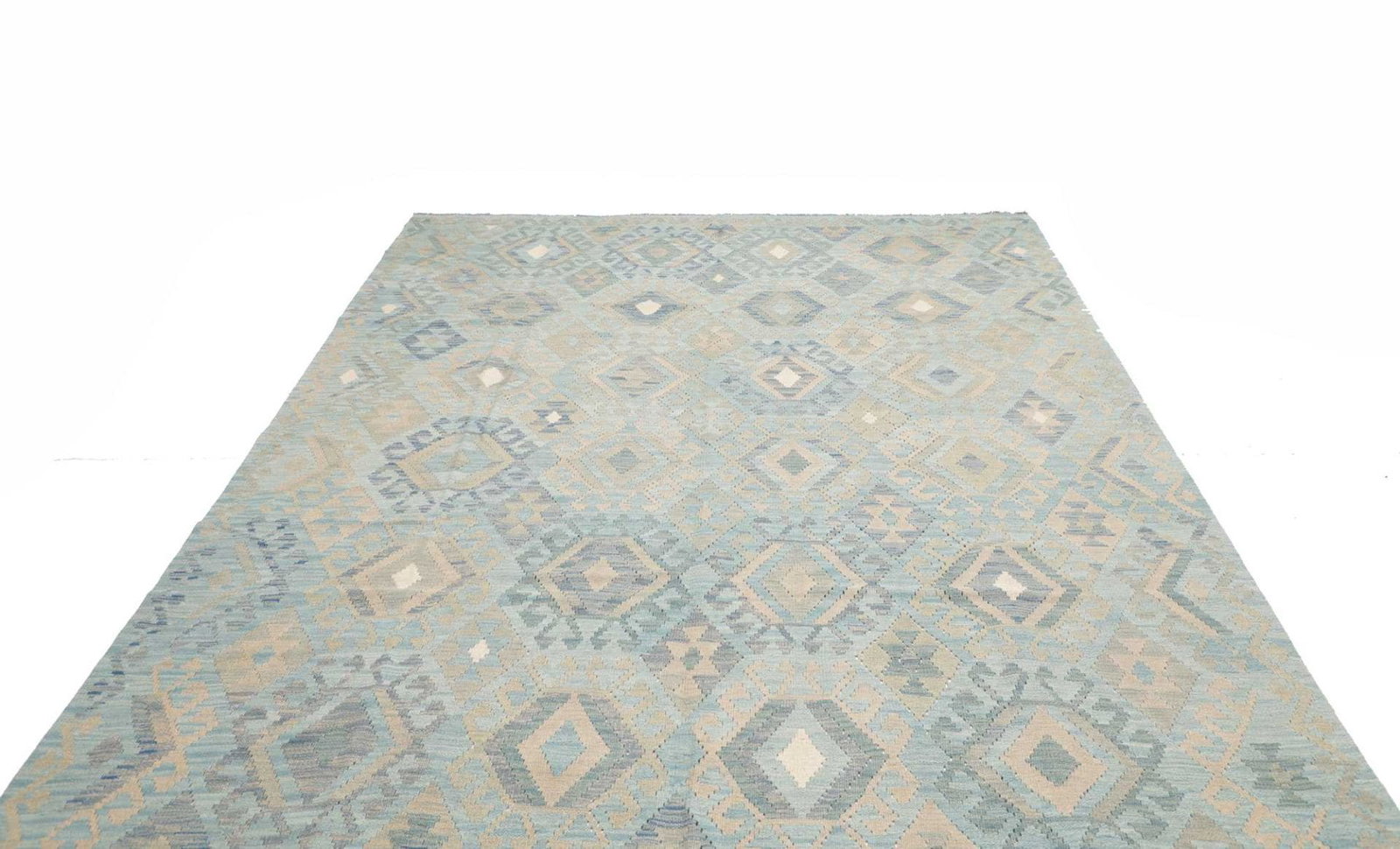 1050$Ursprünglicher Preis war: 1050$837$Aktueller Preis ist: 837$Handgewebter Kelim | Knotendichte: ca. 200.000 / m² | Material: Flor: 100% Schurwolle, Kette: 100% Baumwolle | Größe: 218 x 296 cm | Herkunft: Pakistan