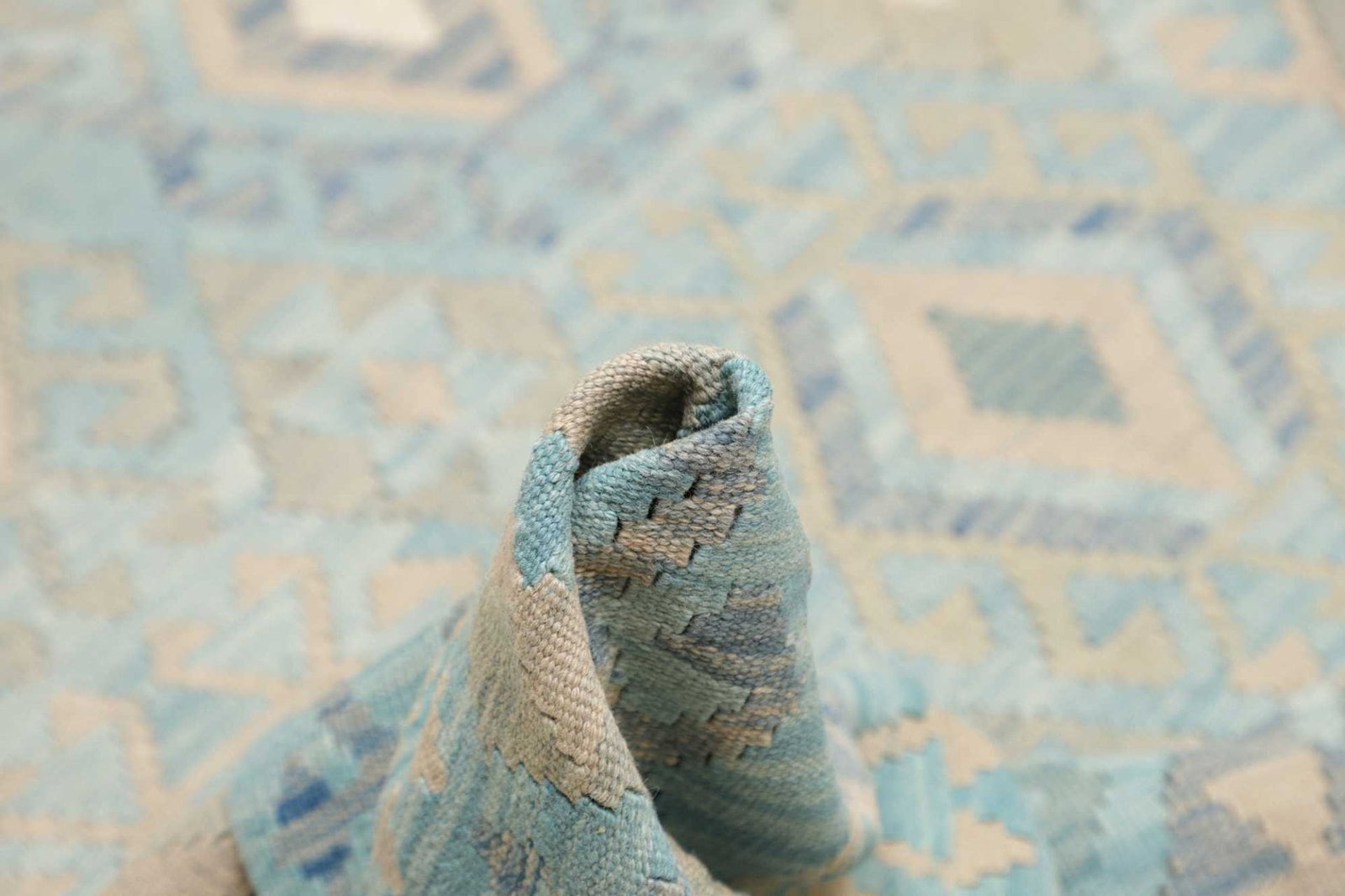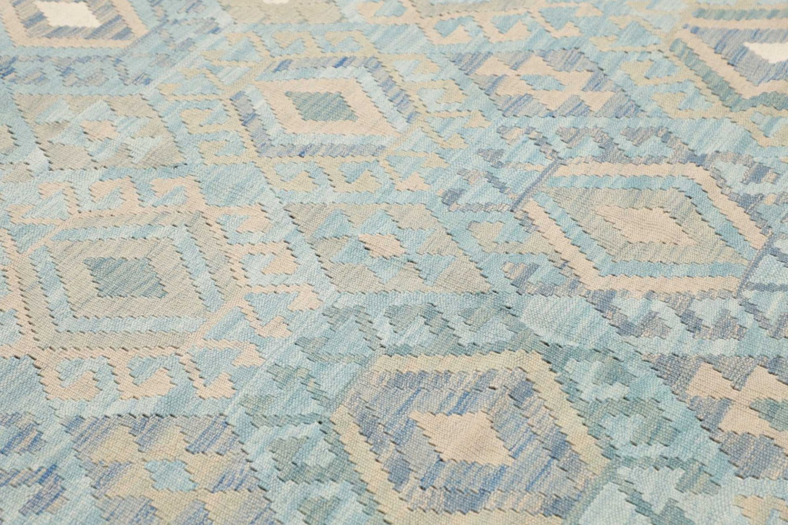 Der Kelim stammt aus Pakistan, einer Region, die für ihre hohe Knüpfqualität und hohe Knotendichte bekannt ist. Pakistanische Teppiche werden traditionell in verschiedenen Handwerksstätten gefertigt, wobei die Kunst des Teppichwebens dort seit Jahrhunderten gepflegt wird. Kelims aus dieser Region sind besonders geschätzt, da sie die Kultur und das Erbe des Landes widerspiegeln. Die Knotenzahl beträgt etwa 200.000 pro Quadratmeter, was auf die präzise Handwerkskunst hinweist.